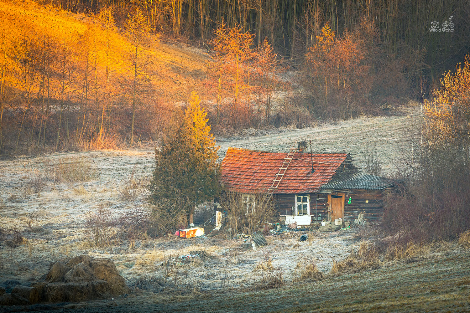 Dodam, że na drugim zdjęciu jest ta sama sarna chwilę wcześniej, zanim postanowiła się jednak ewakuować. Na kolejnym widać klimat miejsca, gdzie ją spotkałem, a ostatnie zdjęcie to opuszczony dom w tej samej okolicy. Odkryłem go rok temu i wróciłem tam o poranku, żeby złapać to piękne światło.