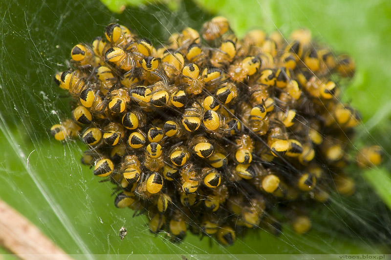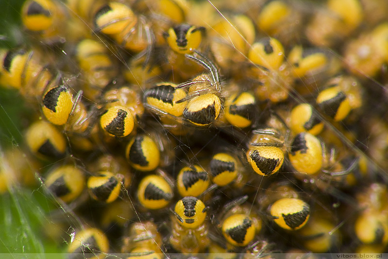 Zawsze marzyłem, żeby trafić na taką scenkę i nareszcie się udało 😉 Całe stado pająkowych (pajęczych?) dzieciaczków 😉 Było ich, całkiem możliwe, że koło setki.