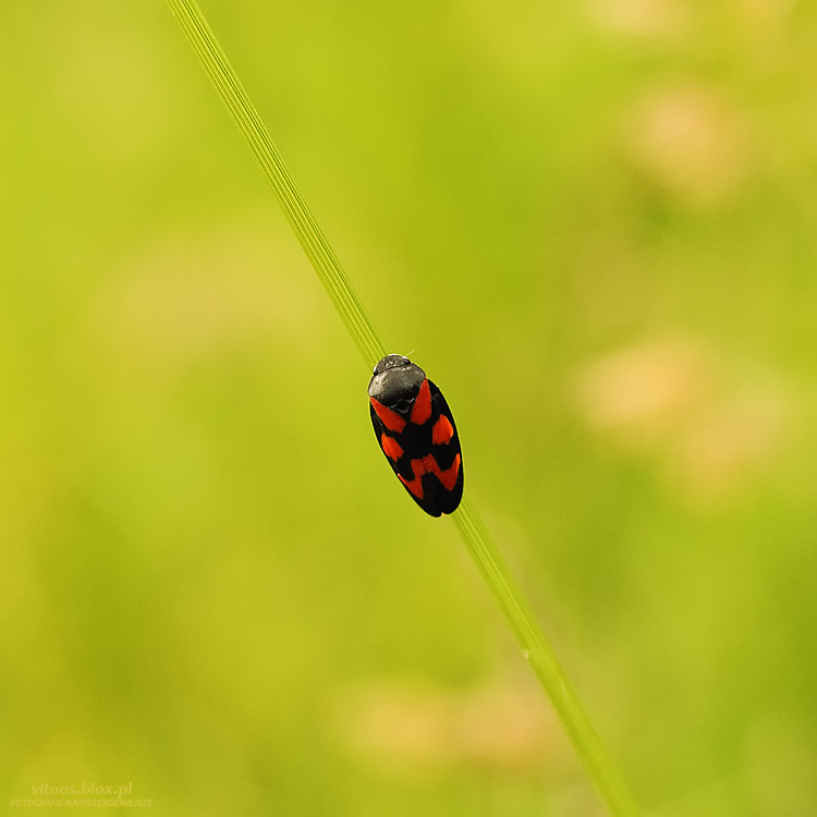 W środę udało mi się na chwilkę wyrwać na fotołowy. Udało mi się sfotografować kilka owadów. Między innymi tą niewielką i wydawać by się mogło, przestraszoną biedronkę.