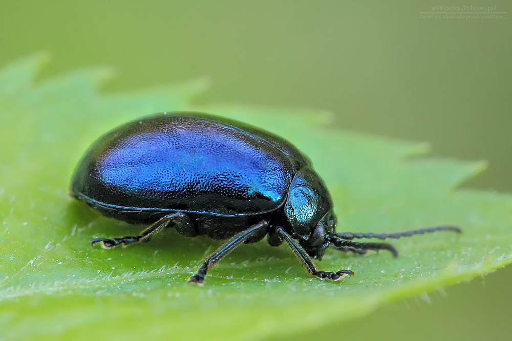 Rynnica olchowa (Linaeidea aenea) otwiera dziś moją szufladę ze zdjęciami, których nie zdążyłem pokazywać na bieżąco. Od wczesnej wiosny te ni czarne, ni ciemnogranatowe chrząszcze okupują nie tylko olchy, ale wszystko co popadnie. Są trudne do fotografowania ze względu na odbijający światło pancerz, ale wczesną wiosną człowiek spragniony fotografowania przytula obiektyw do wszystkiego co się rusza, a jest malutkie.