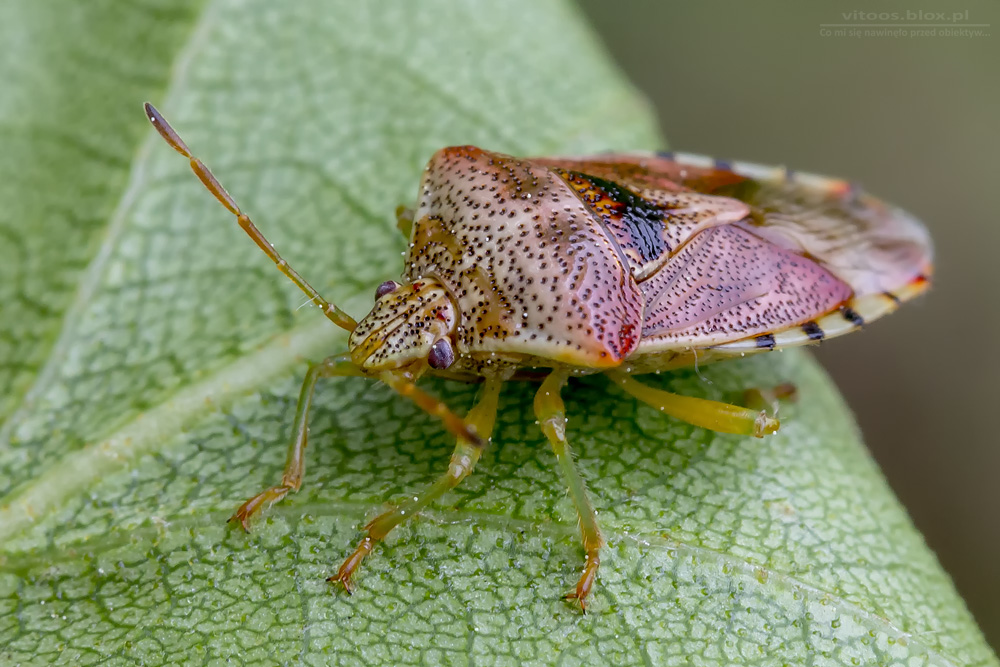 Może to i dosyć popularny pluskwiak, ale widywałem go w poprzednim sezonie tyle razy, że musi mieć tu swoje pięć minut. Miałem pewną miejscówkę, gdzie często mogłem liczyć na obecność knieżycy szarej. Był to skraj lasku brzozowego. Siedziały sobie i na liściach brzozy i na niskich roślinkach pod drzewami.