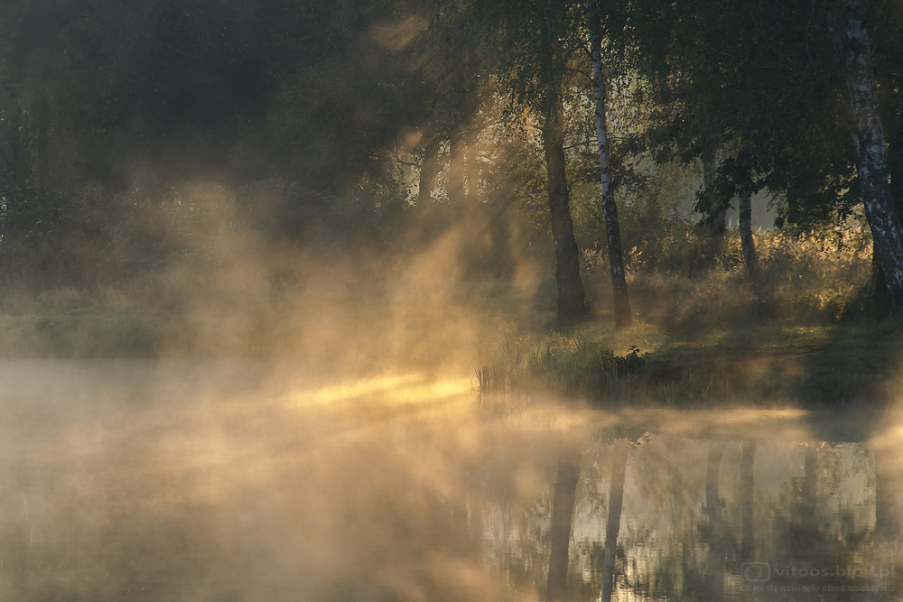 Na takie poranki trzeba będzie troszkę poczekać. Pogoda ma się pogorszyć, ma być zimno, deszczowo i wietrznie. Dziś na południu jeszcze słoneczna aura, a na jej pożegnanie kilka fotek z poprzedniej soboty. Celem mojej wyprawy fotograficznej po raz kolejny był zalew w Kamionce Z tą różnicą, że tym razem poczekałem, aż wzejdzie słońce, które dodało ciepłego koloru unoszącej się nad wodą mgiełce.