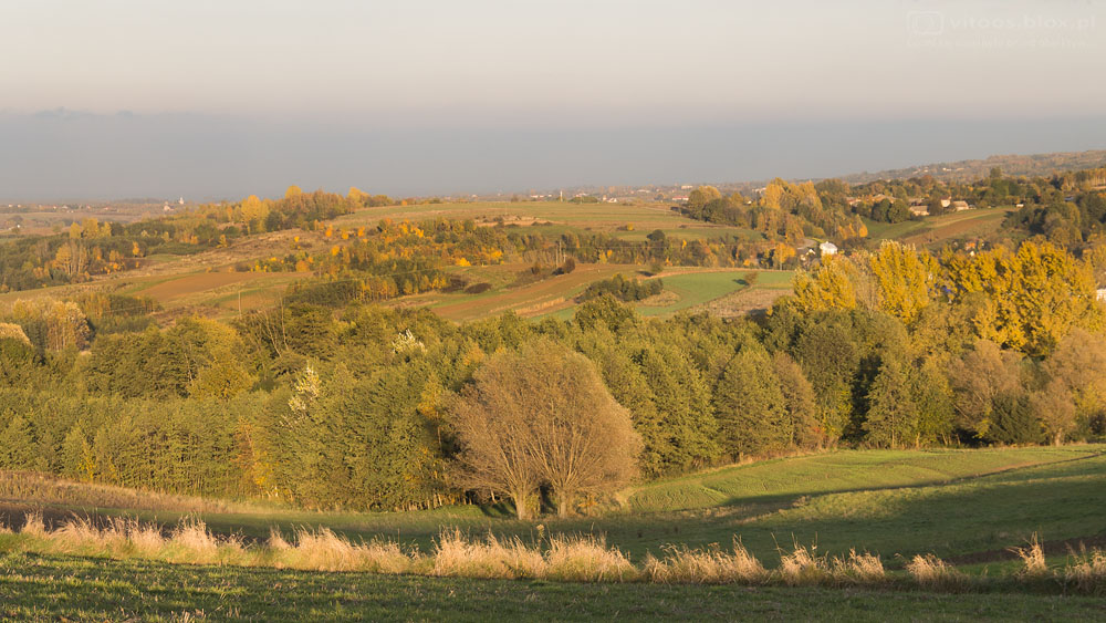 Jeszcze półtora tygodnia temu przez kilka słonecznych godzin świat wyglądał kolorowo. Wykorzystałem ten czas na spacer po okolicznych polach. Do dziś większość liści opadła, a o słonecznych chwilach możemy tylko pomarzyć.
