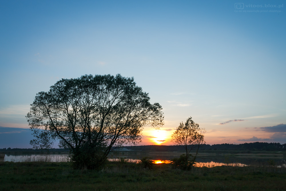 Dzisiejszy zachód nie zapowiadał się rewelacyjnie. Około stu kilometrów ode mnie na zachód po południu przeszły burze i wisiały tam gęste chmury. I faktycznie słońce schowało się za nimi już dwadzieścia minut przed zachodem. Kiedy tylko to nastąpiło, w miejscu, w którym się schowało pojawiły się kolorowe łuki. Było ich aż trzy. Ten najbardziej zewnętrzny słabo widoczny. Całe zjawisko trwało około półtorej minuty.