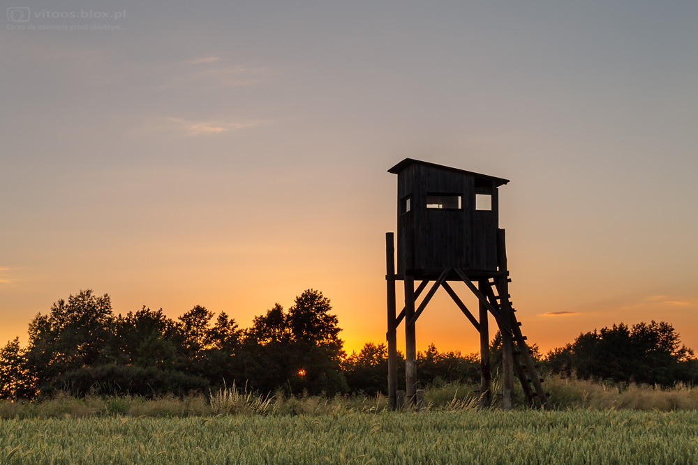 Kilkaset metrów dalej zauważyłem ambonę. Nie lubię tych konstrukcji i najchętniej chodziłbym z piłą motorową i je ścinał, no ale do zdjęcia niech sobie będzie