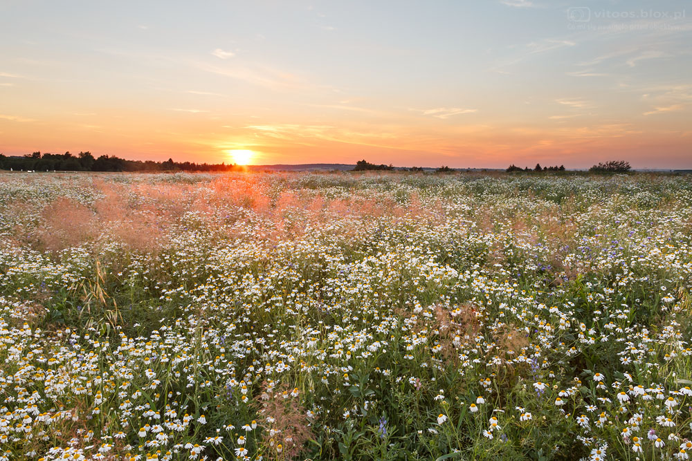 FOT. WITOLD OCHAŁ POWIAT ROPCZYCKO-SĘDZISZOWSKI FOTOGRAF KRAJOBRAZU SZKODNA PODKARPACIE RUMIANKOWE POLE I ZACHÓD SŁOŃCA