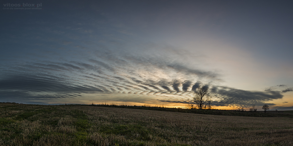 W ubiegłą niedzielę w końcu miałem okazję wybrać się na zdjęcia. Pogoda nie była zachęcająca, ale szczęście mi dopisało i udało mi się złapać niezbyt często występujące pasiaste chmurki zwane altocumulus stratiformis undulatus.