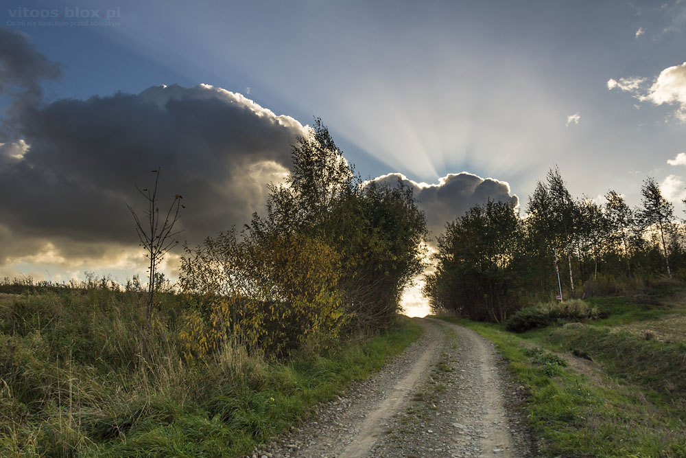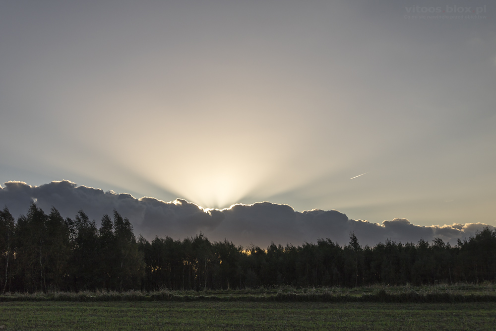 W pierwszej połowie października wybrałem się na spacer pod wieczór. Tego dnia na niebie co chwilę pojawiały się słoneczne lasery.