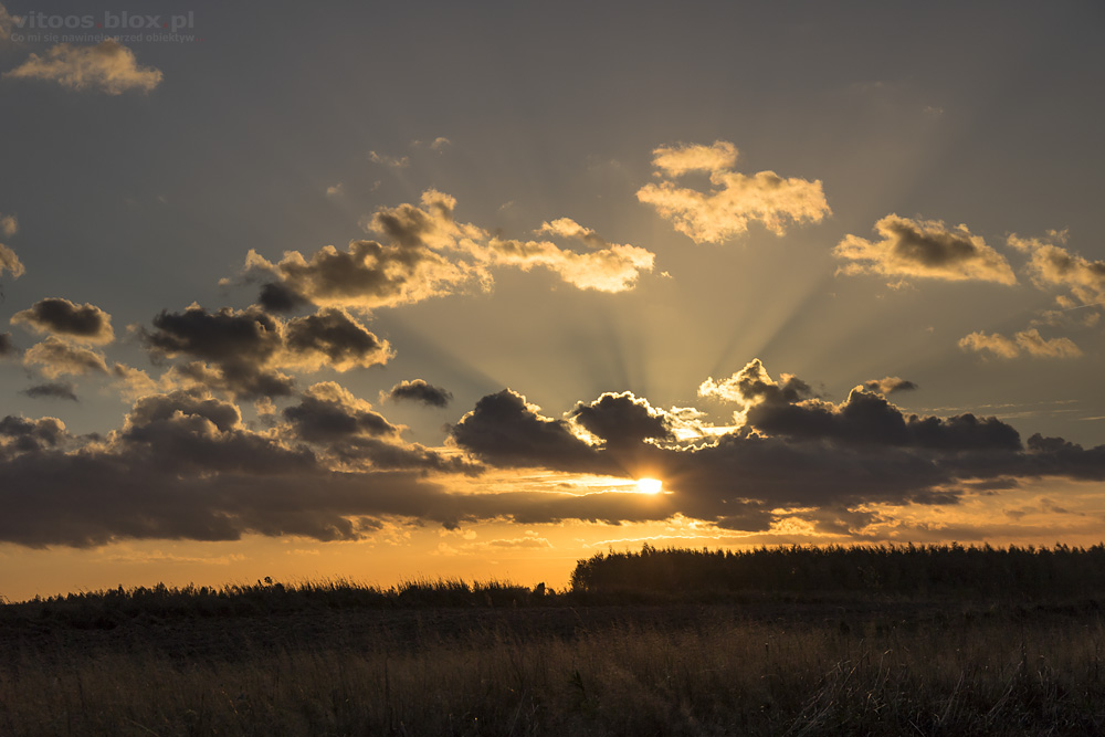 FOT. WITOLD OCHAŁ POWIAT ROPCZYCKO-SĘDZISZOWSKI FOTOGRAF KRAJOBRAZU ZAGORZYCE PODKARPACIE SŁONECZNE LASERY PROMIENIE SŁOŃCE ZA CHMURAMI ZACHÓD SŁOŃCA PÓŹNE POPOŁUDNIE