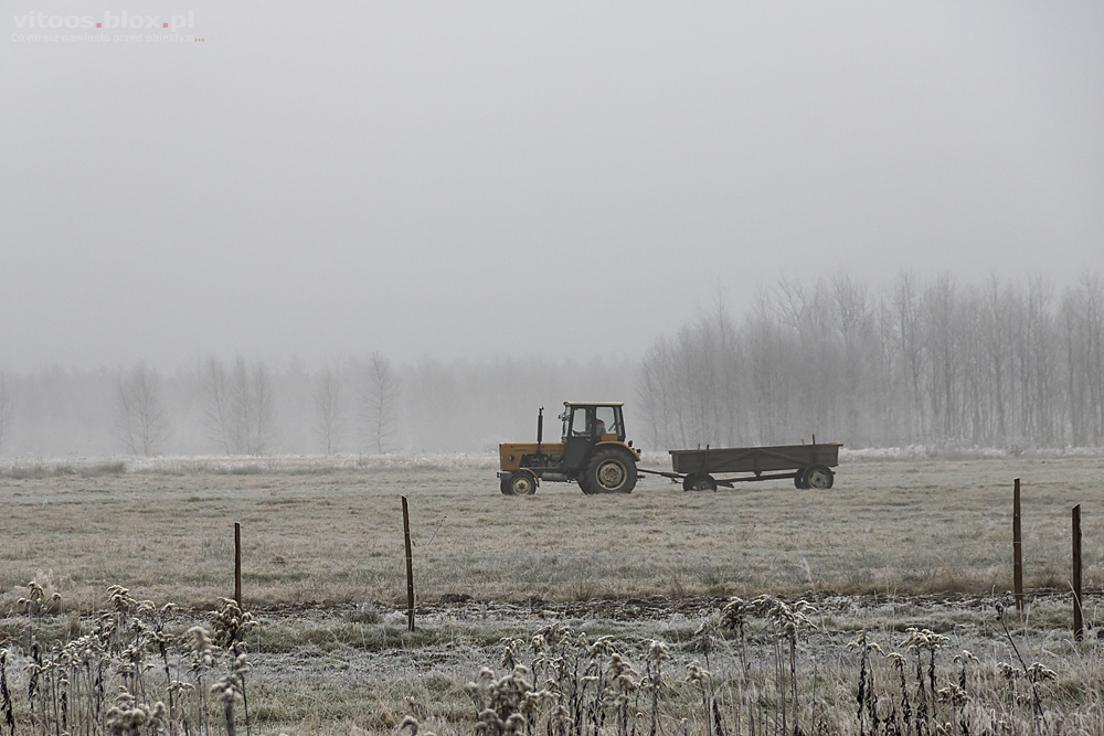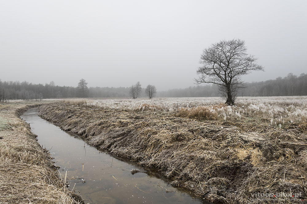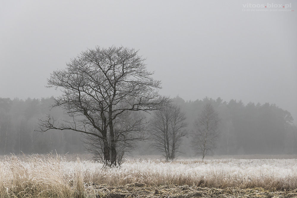 W ubiegłą sobotę przez całą dobę zalegała mgła i temperatura spadła poniżej zera. Trawy i drzewa pokryły się szadzią. Było bezwietrznie, a spacer po rozległej leśnej polanie w takich warunkach i okolicznościach przyrody, to sama przyjemność.