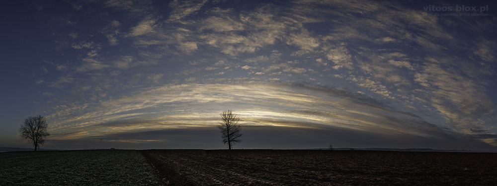 W sobotę rano obudziłem się przed świtem i miałem mieszane uczucia, czy w ogóle otwierać oczy. Coś mnie jednak tknęło, wstałem i wyszedłem na zewnątrz. Niebo było zasnute chmurami. Wahałem się, czy jest sens wybierać się na zdjęcia. Wyjechałem jednak na górkę, a tam po jakimś czasie zaczął się spektakl.