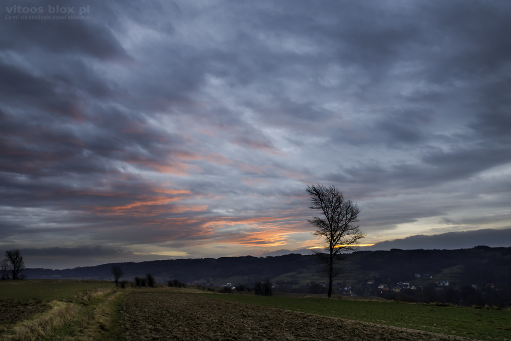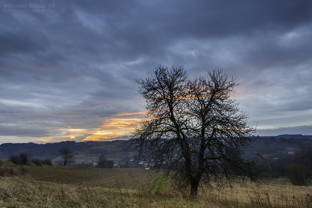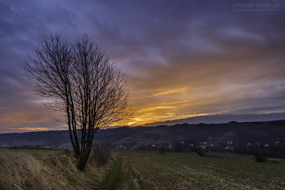W przedostatni dzień roku w okolicach świtu zaliczyłem z aparatem kilka miejscówek. Najpierw mało udany przedświt pod akacjami. Później poniższe zdjęcia, a potem jeszcze między innymi mgłę pod krzyżem. W poniższym miejscu mgły akurat było niewiele, ale słonce długo było schowane za chmurami. Kiedy w końcu je pokonało okolica zrobiła się (boje się nazywać kolory 🙂 ) złota.