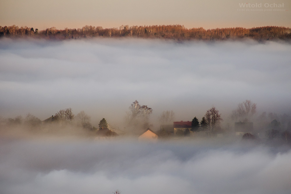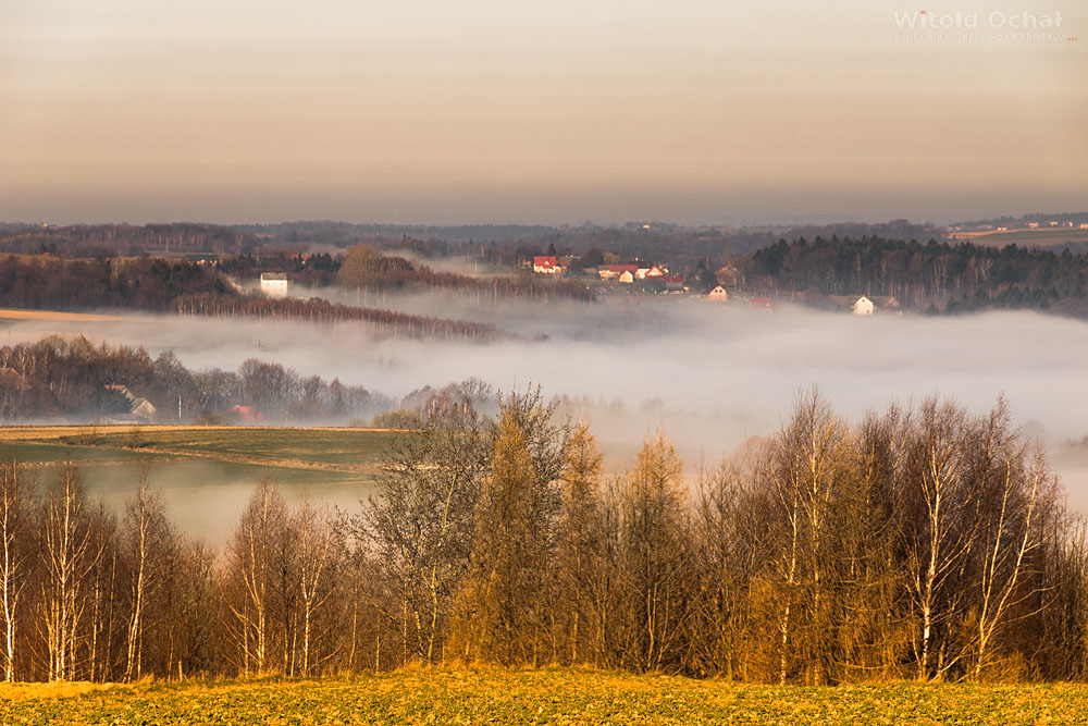 FOT. WITOLD OCHAŁ POWIAT ROPCZYCKO-SĘDZISZOWSKI FOTOGRAF KRAJOBRAZU GMINA IWIERZYCE PODKARPACIE MGLISTY PORANEK MGŁA W DOLINACH