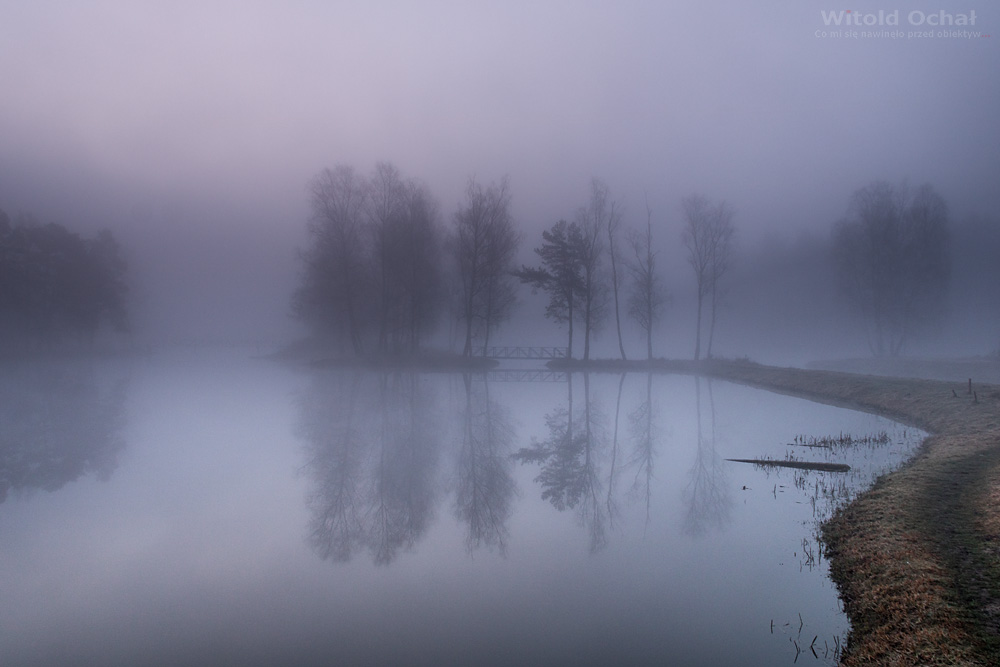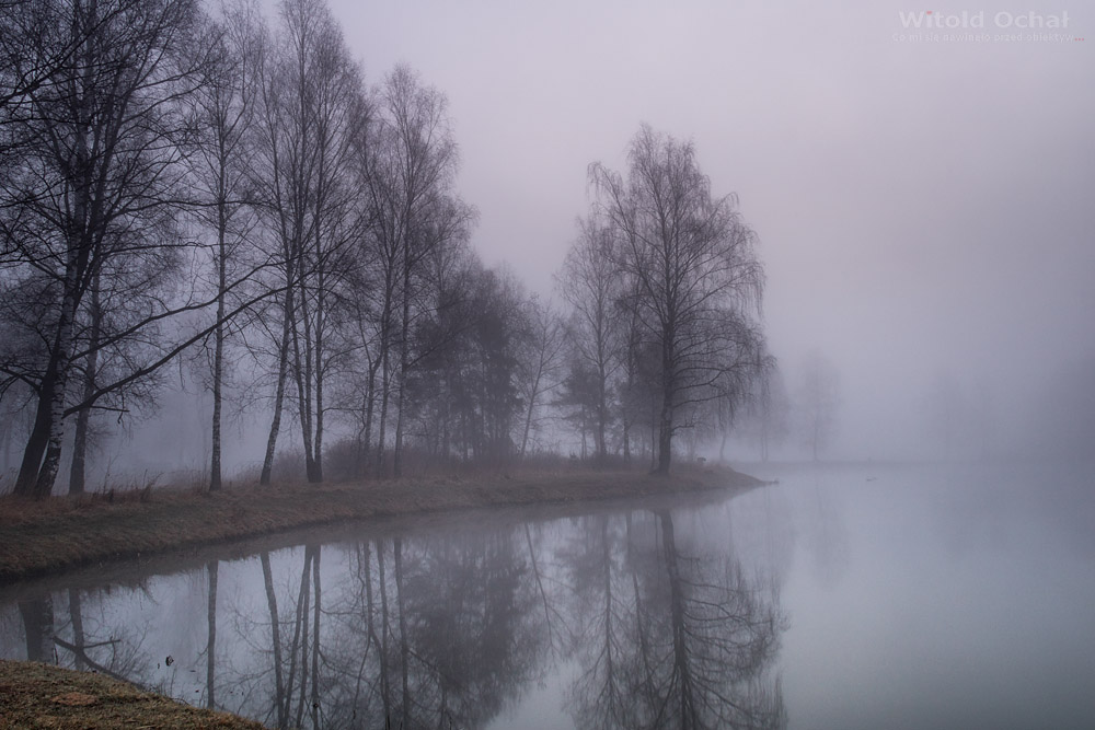 Na rano prognozy przewidywały mgłę. Takiej okazji nie mogłem przepuścić. Już na czterdzieści minut przed wschodem słońca byłem nad pobliskim zalewem i od razu zabrałem się za fotografowanie. Potem zacząłem czekać, aż mgły się zaczną podnosić, jednak nic się nie zmieniało…