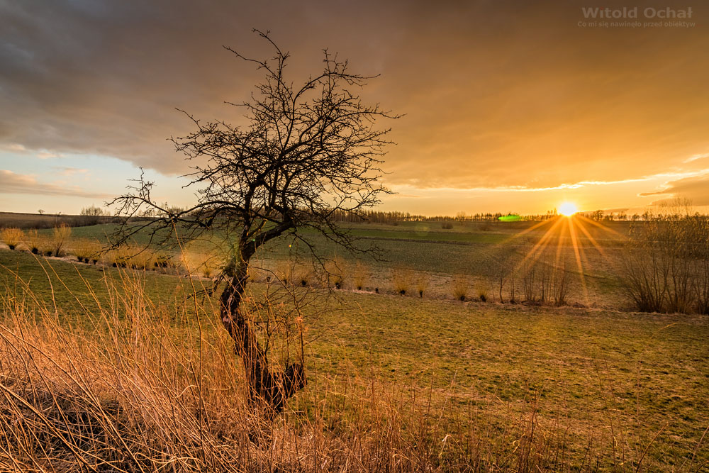 FOT. WITOLD OCHAŁ POWIAT ROPCZYCKO-SĘDZISZOWSKI FOTOGRAF KRAJOBRAZU GNOJNICA PODKARPACIE ZŁOTA GODZINA SAMOTNE DRZEWKO OWOCOWE