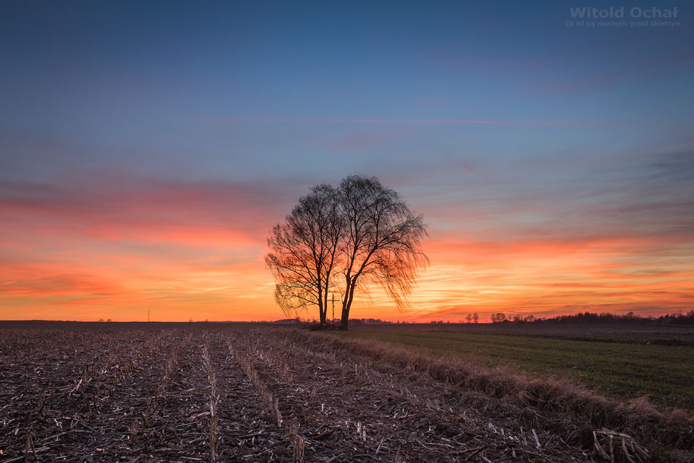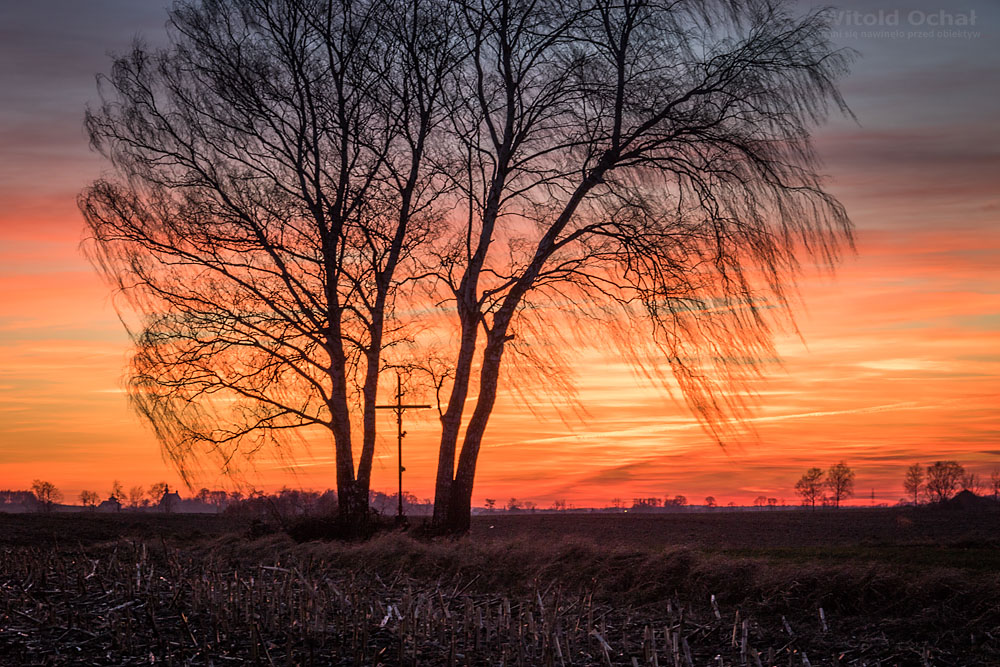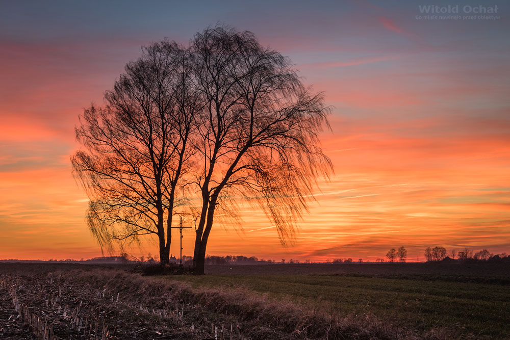 FOT. WITOLD OCHAŁ POWIAT ROPCZYCKO-SĘDZISZOWSKI FOTOGRAF KRAJOBRAZU SIELEC ZACHÓD SŁOŃCA PODKARPACIE SAMOTNE BRZOZY
