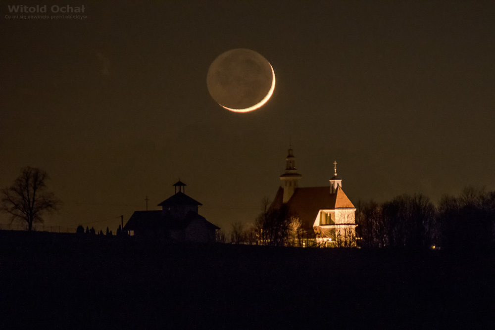 FOT. WITOLD OCHAŁ POWIAT ROPCZYCKO-SĘDZISZOWSKI FOTOGRAF KRAJOBRAZU GÓRA ROPCZYCKA SĘDZISZÓW MAŁOPOLSKI ZACHÓD KSIĘŻYCA NÓW ŚWIATŁO POPIELATE PODKARPACIE ASTROFOTOGRAFIA