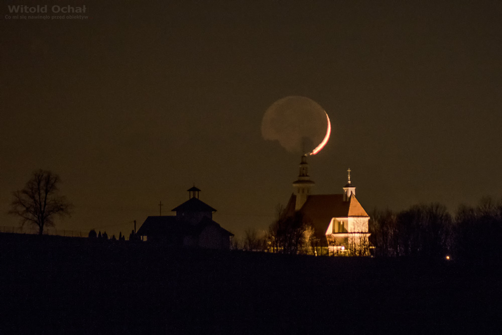 Chmury maja to do siebie, że czasem przeszkadzają szczególnie w obserwacjach astronomicznych,.. ale zdążyłeś. Nastrojowy kadr, jakby ktoś świecąc na kościół, podświetlał księżyc. 🙂
