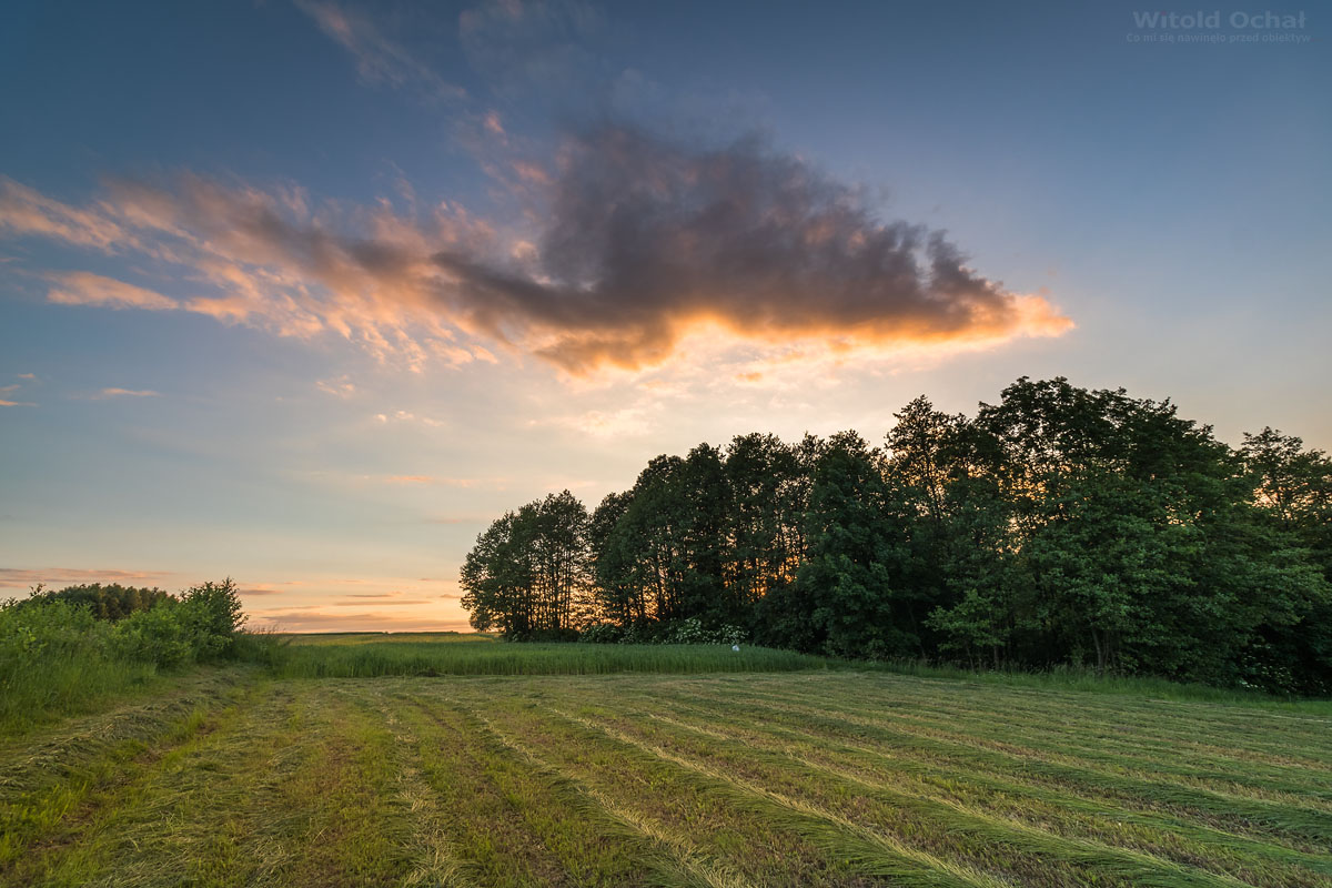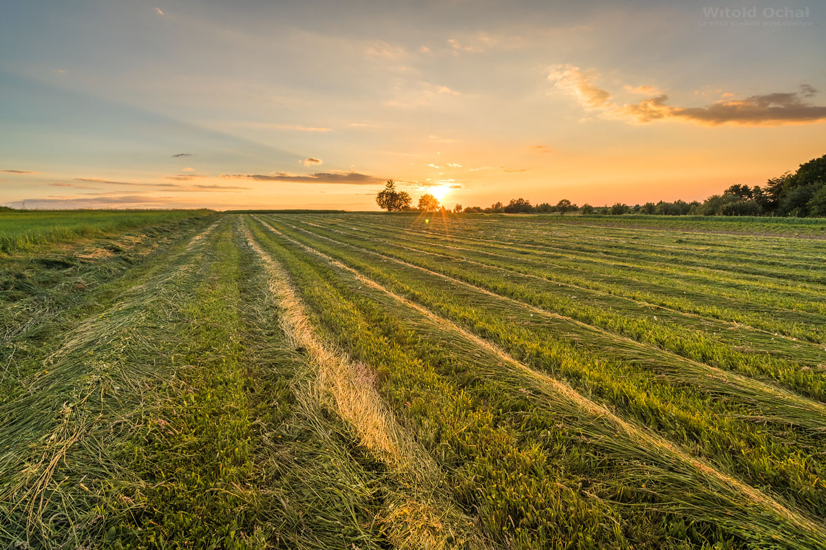 FOT. WITOLD OCHAŁ POWIAT ROPCZYCKO-SĘDZISZOWSKI FOTOGRAFIA KRAJOBRAZOWA PODKARPACIE SZKODNA ZACHÓD SŁOŃCA ŚWIEŻO SKOSZONA TRAWA UPAŁ