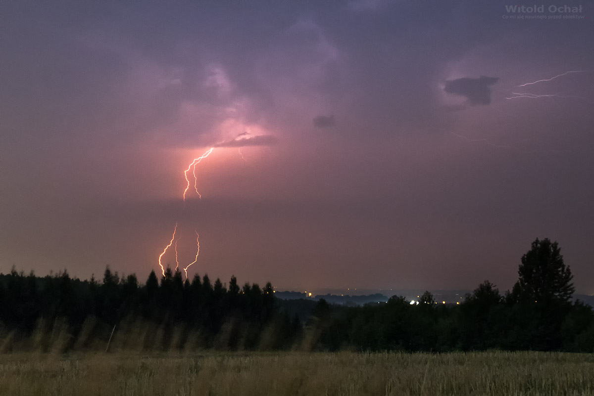 Przedwczorajszego wieczoru do mojej okolicy w zastraszającym tempie zbliżało się dwie potężne superkomórki burzowe. Miałem trochę stracha wychodzić im na przeciw, ale trochę na szczęście wygasły na kilkadziesiąt kilometrów ode mnie. Niemniej udało się złapać kilka wyładowań.