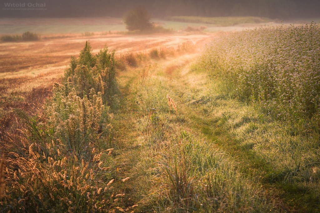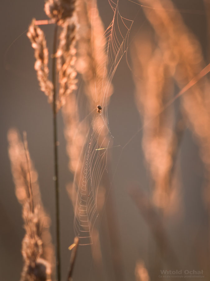 Krótko po wschodzie. Słońce jeszcze lekko przysłonięte przez poranne mgły i zroszone pajęczyny na oświetlonych delikatnym światełkiem trawach. To wszystko trwało kilkadziesiąt minut. Mnie się wydawało, że czas się zatrzymał w miejscu.