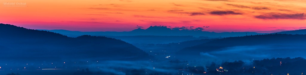 Tym razem zupełnie nowa miejscówka i zdjęcia robione długo po zachodzie słońca. Tym razem padło na miejscówkę w miejscowości Kożuchów (powiat strzyżowski), z której rozciąga się widok na „Bramę Frysztacką”, a przy dobrej pogodzie widać również Tatry.