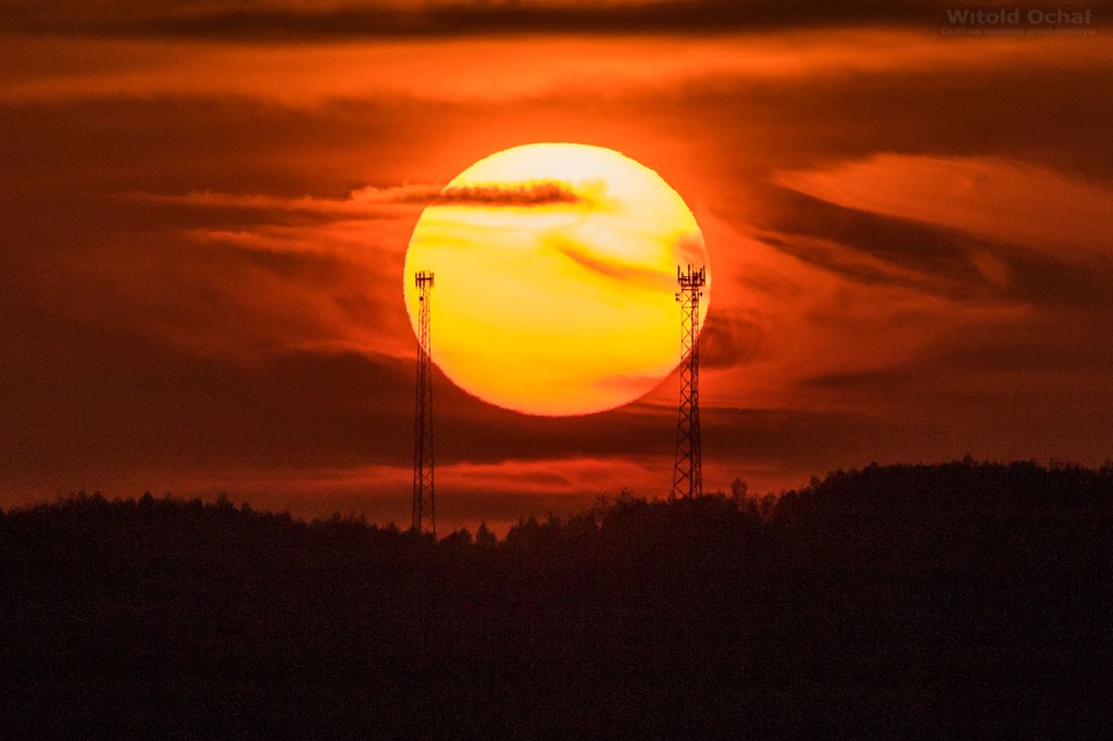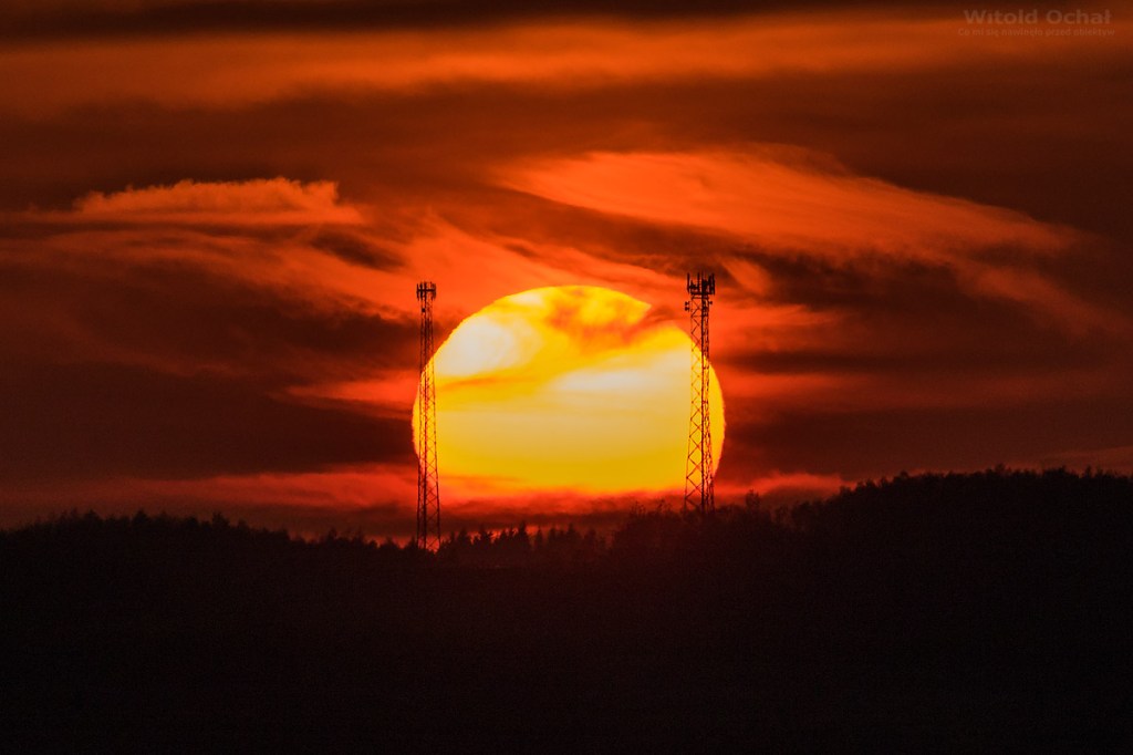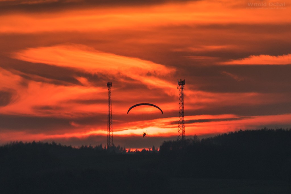 Dodatkowo trafił się fajny gratis, choć nieco się spóźnił. Kiedy słońce dopiero co zaszło między nadajnikami pojawił się paralotniarz.