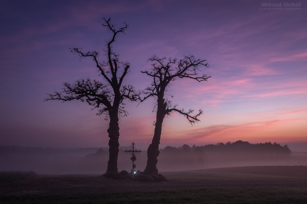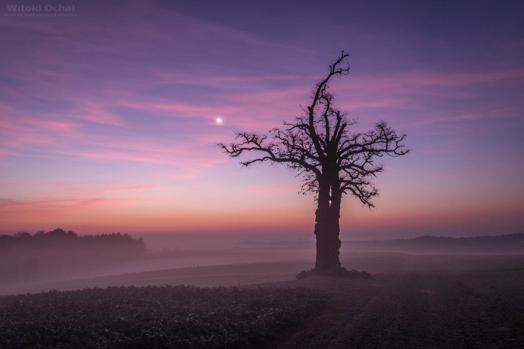 Wyjechałem z domu półtorej godziny przed wschodem. Po to, aby poszukać miejsc z mgłą. Miałem w planie znaleźć miejsce, gdzie ja będę na górce w słońcu, a w dole rozległe mgły. Udało mi się to dużo później i o tym kiedy indziej.