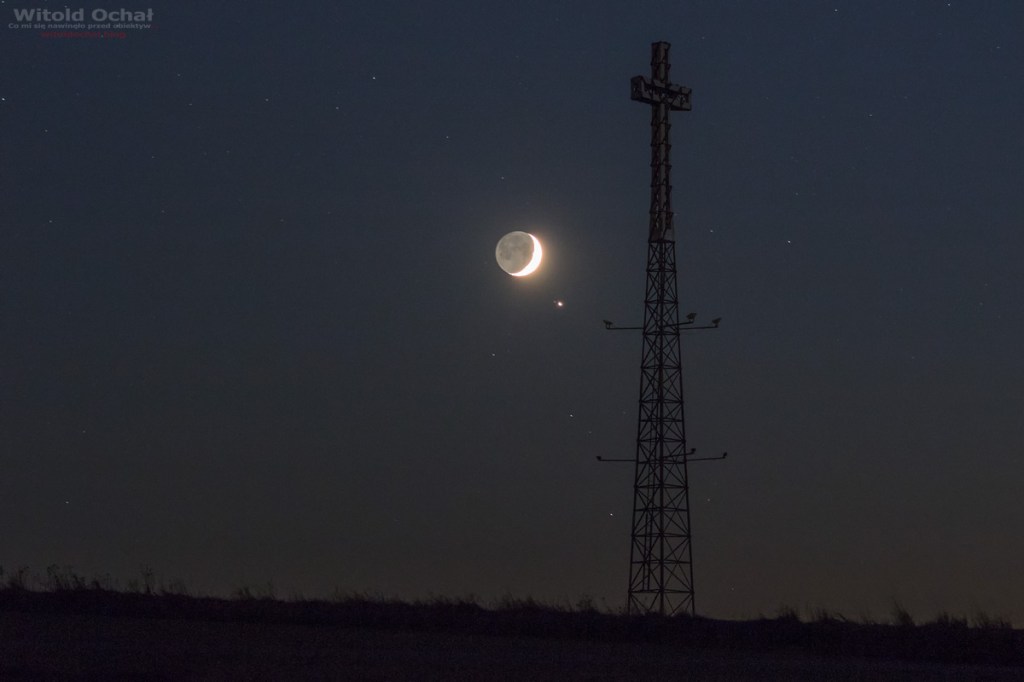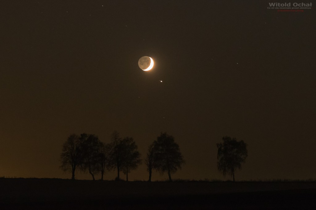 FOT. WITOLD OCHAŁ POWIAT ROPCZYCKO-SĘDZISZOWSKI FOTOGRAFIA KRAJOBRAZOWA PODKARPACIE KONIUNKCJA KSIĘŻYCA Z JOWISZEM SĘDZISZÓW MAŁOPOLSKI NOC NOCNE NIEBO
