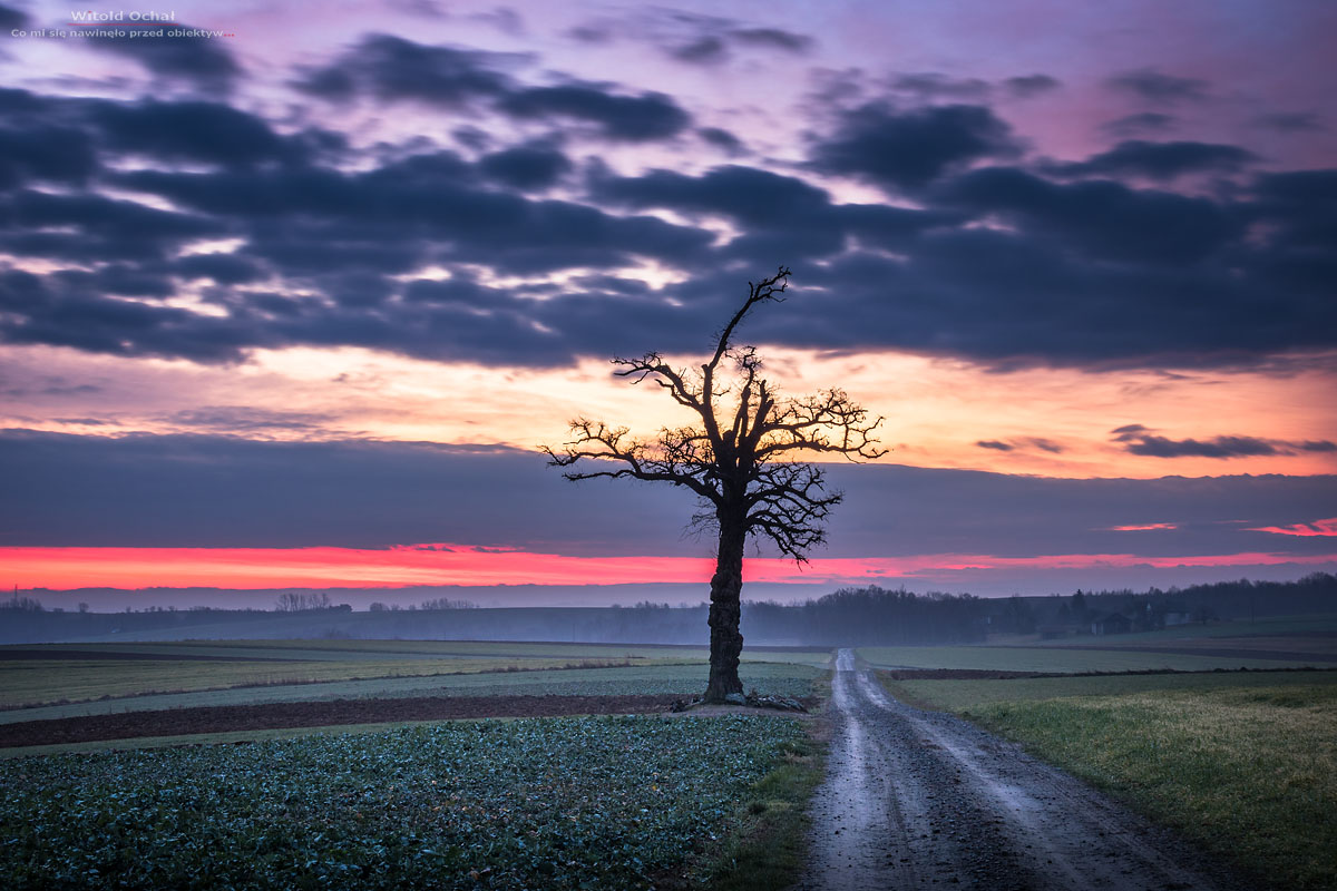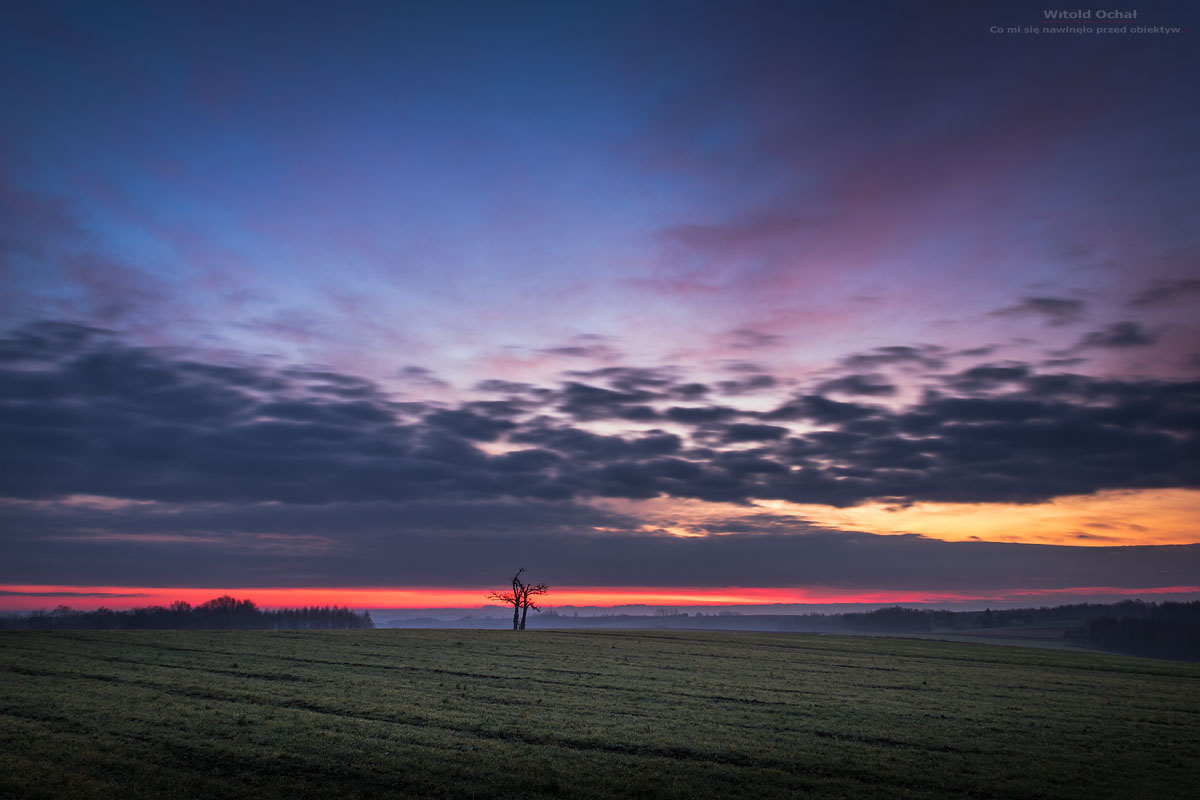 Wracam do gry z nowymi fotkami. Nie licząc moich dalekich obserwacji, to jakiś sensowny zachód fotografowałem dokładnie miesiąc temu. W sobotę pełen wątpliwości, że przecież można było zostać w łóżku, na pół śpiący pojechałem pod akacje. Było 35 minut do wschodu słońca i tylko cienki pasek kolorowego nieba nad horyzontem.