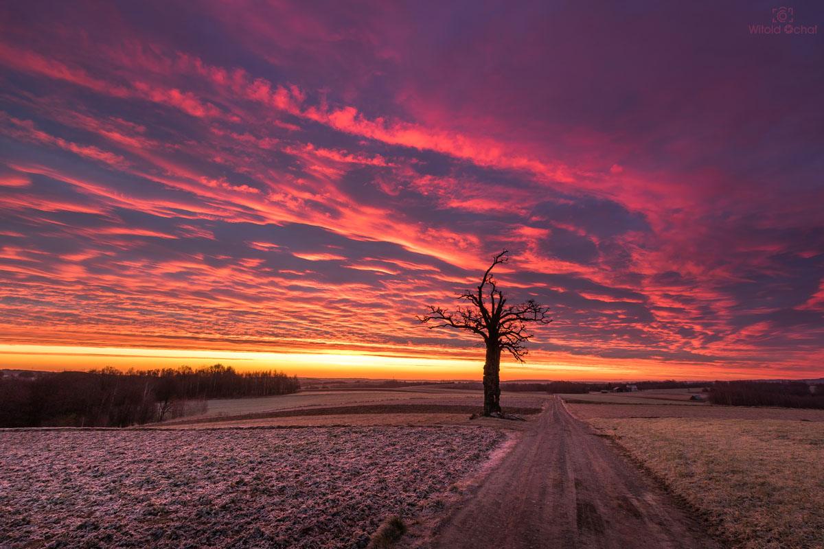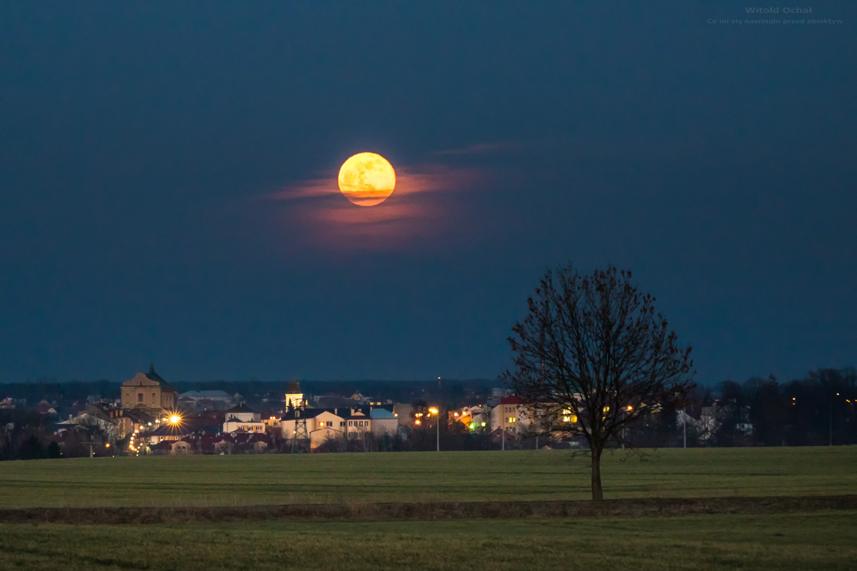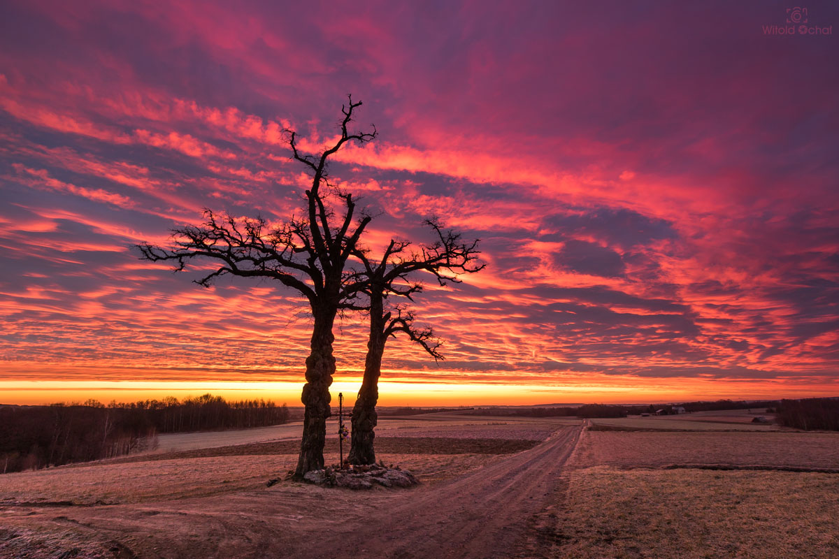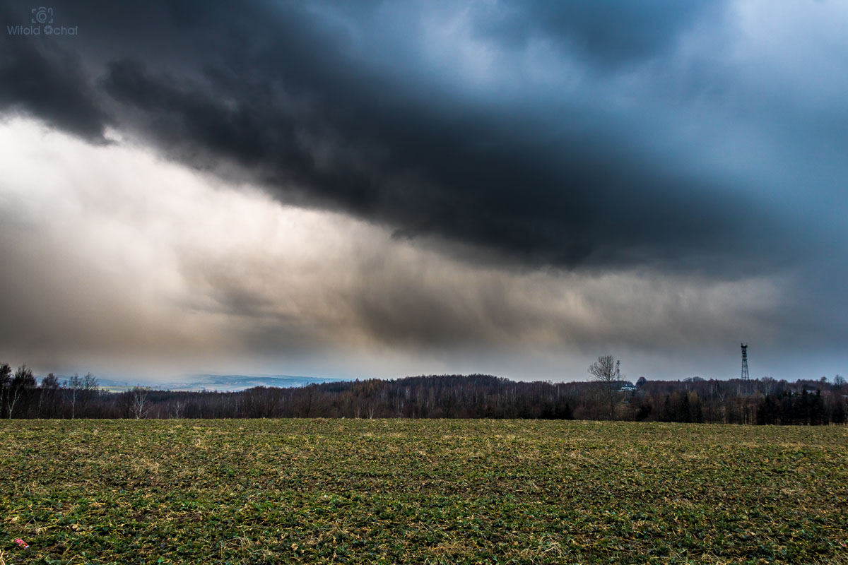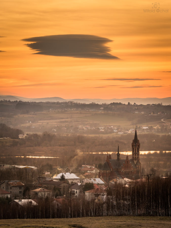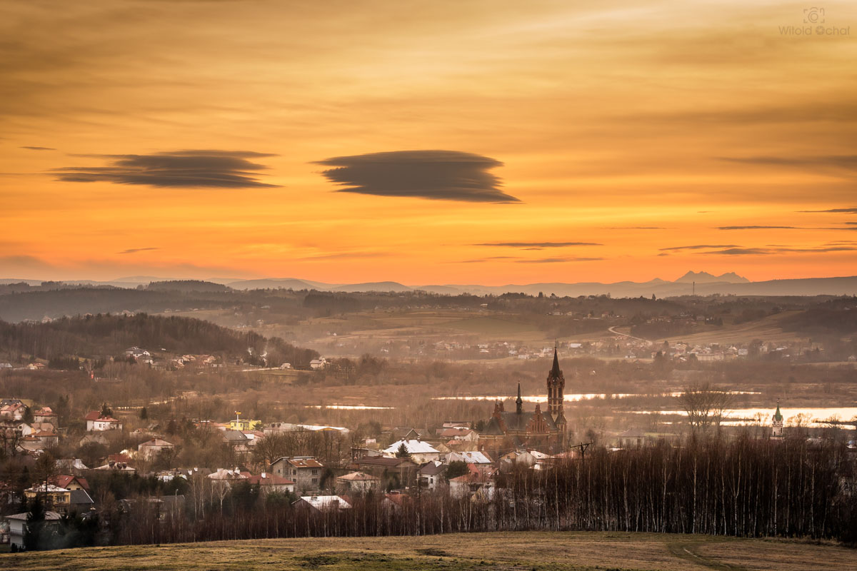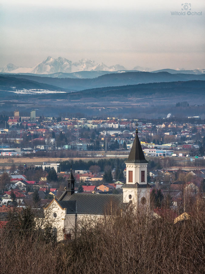 9:30. Wracam z udanego porannego fotografowania. Zerknąłem na widzialność i okazało się, że jest szansa na zobaczenie Tatr. A że byłem niedaleko zupełnie dla mnie nowej miejscówki, postanowiłem spróbować złapać Tatry z pobliskim kościołem na jednym kadrze. I oto mamy – kościół parafialny pw Św. Wawrzyńca w Warzycach, a za nim, 115 km dalej – Tatry.