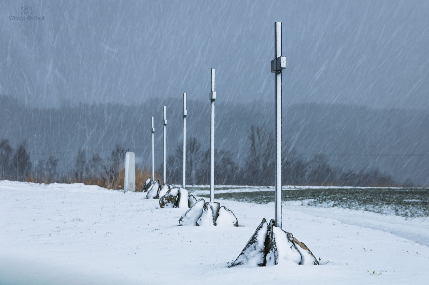 Dwudziestego drugiego marca, drugiego dnia wiosny przechodziły nad regionem burze śnieżne, jedna po drugiej. Ja naliczyłem ich co najmniej trzy. Jednej z nich wyjechałem na przeciw z następującym celem – pokazać na zdjęciach sam opad. Oczywiście fotografowanie na zewnątrz nie wchodziło w rachubę. Ustawiałem samochód tak, aby od zawietrznej mieć uchylone okno i to przez nie robiłem zdjęcia. Myślę, że cel osiągnąłem 😉