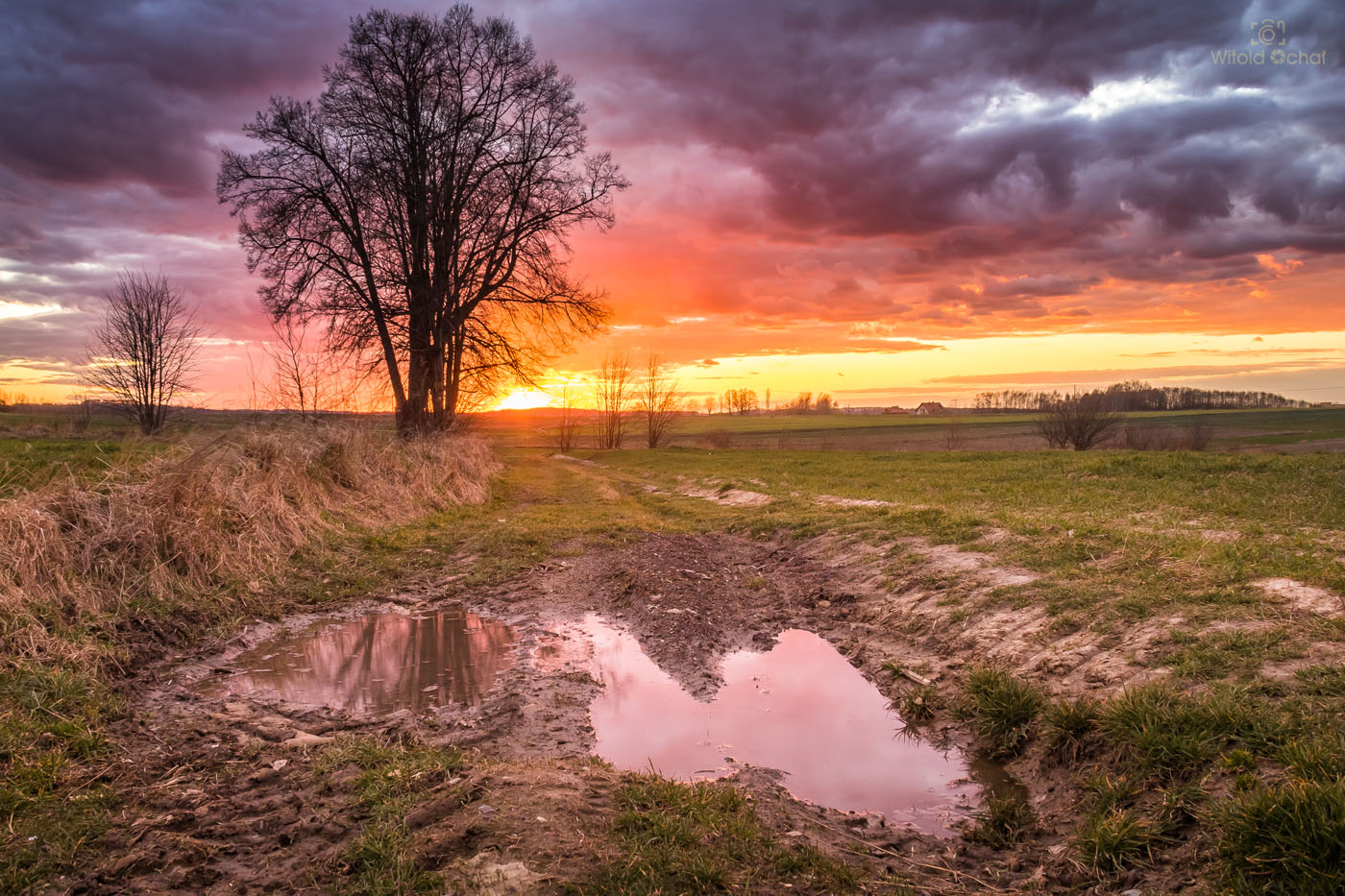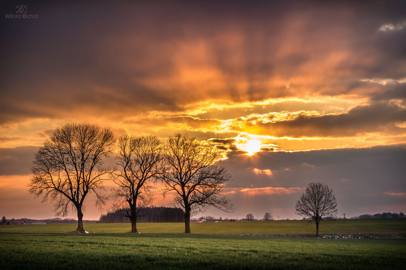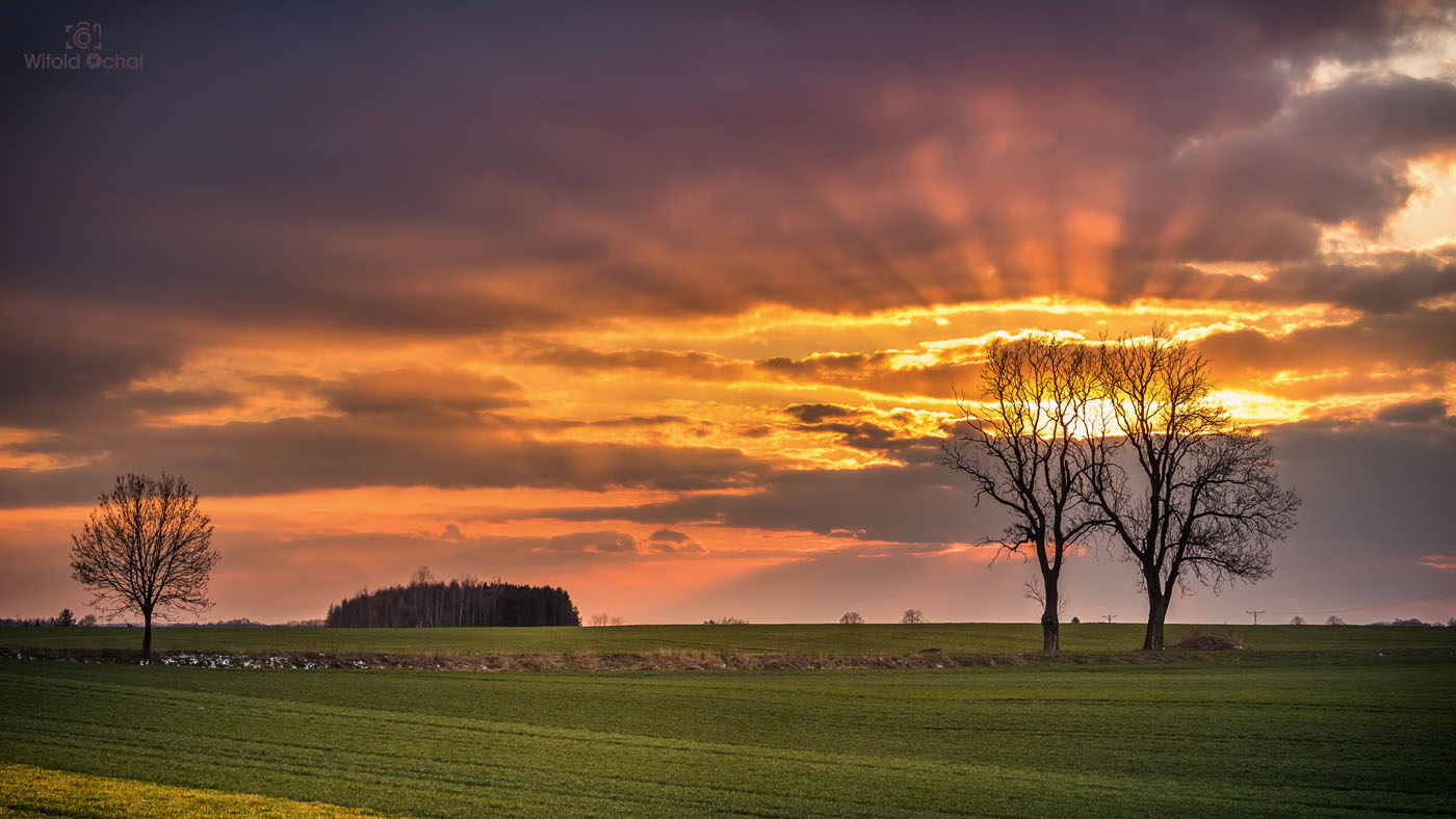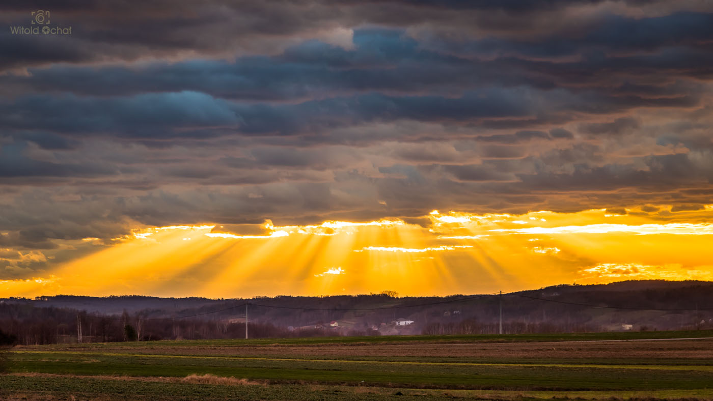 Eh te moje wewnętrzne głosy. Wczoraj wieczorem mówiły mi – nie siedź w domu, pojedź na odosobnienie w polach. A nuż będzie się coś ciekawego działo na niebie. Wybrałem się nieco wcześniej, bo wspomniane głosy tak mi kazały. Bardzo dobrze zrobiłem, bo właśnie słońce zaczęło się przebijać pomiędzy chmurami tworząc widowiskowe promienie.