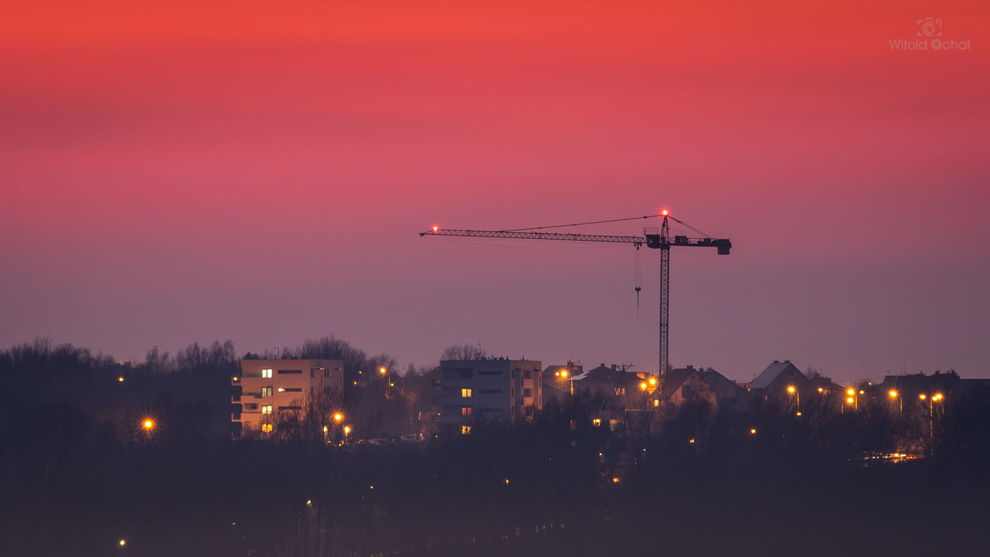 18 marca kolory na niebie utrzymywały się jeszcze długo po zachodzie. Do tego delikatne mgiełki, a może smog, dodały krajobrazowi nieco tajemniczości. Na tapetę poszły: kościół w nieodległym miasteczku, fabryka cukru i dźwig. Zdjęcia (oprócz drugiego) wykonane na długiej ogniskowej 400 mm + (FF).