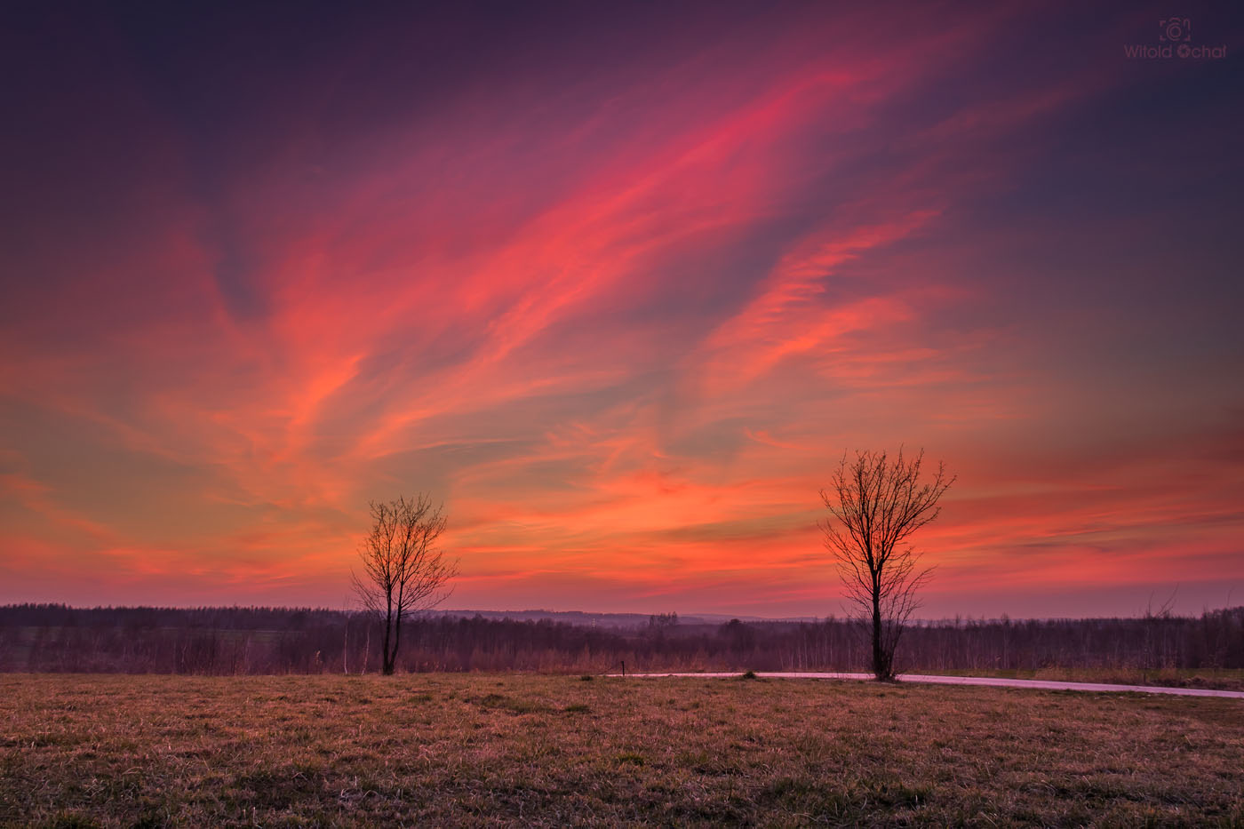 Fotografowałem już w tylu różnych warunkach, że wydawać by się mogło, że nic już nie może mnie zaskoczyć…. A jednak. Dwudziesty pierwszy lutego, kilka minut po wschodzie słońca. Fotografowałem niesamowite chmury na wschodzie. Nauczony doświadczeniem w którymś momencie odwróciłem się w przeciwną stronę, a tam…. Intensywność barw i kolory… sami przyznacie, że wydają się nierzeczywiste. Sam bym w to nie uwierzył, gdybym nie widział na własne oczy i nie zarejestrował tego na matrycy.