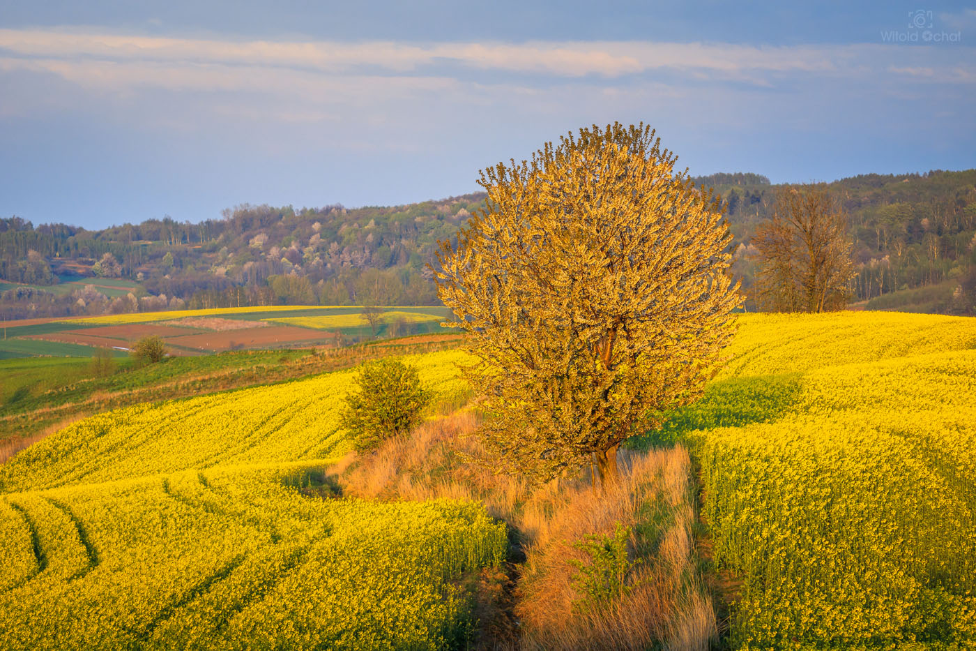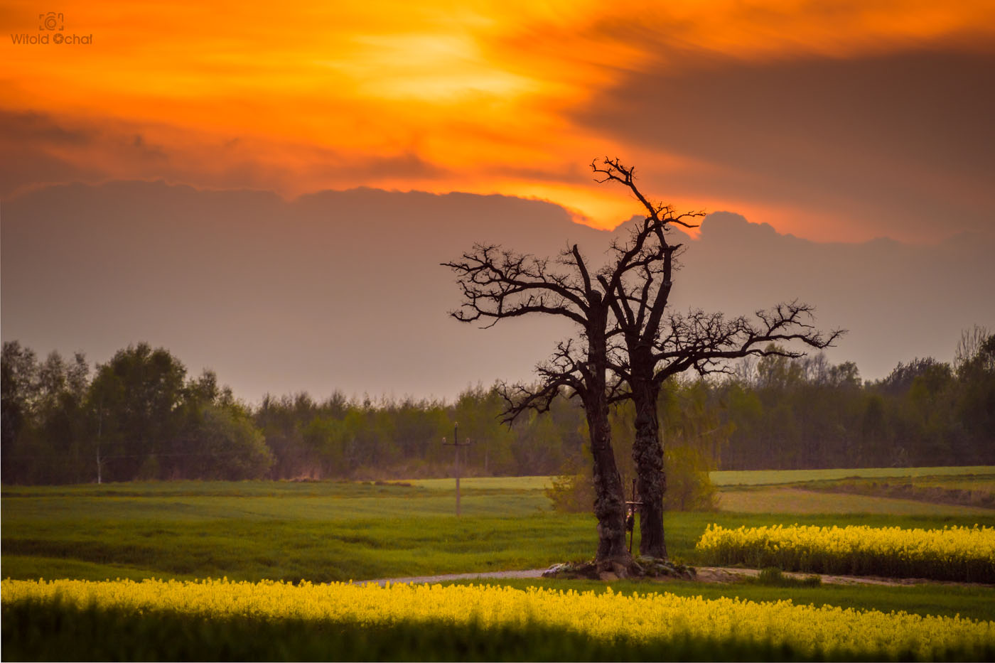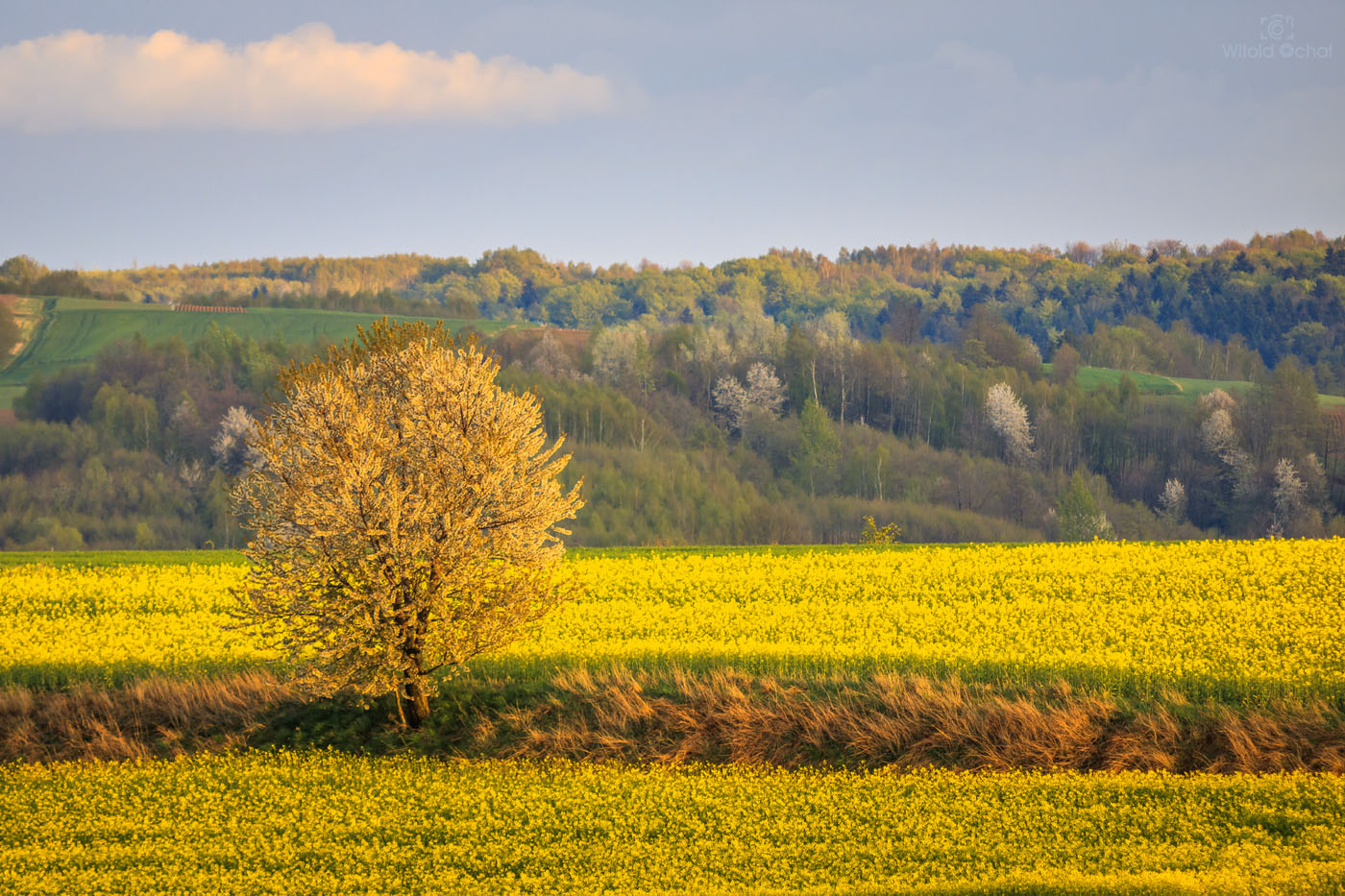 sierpien 2018, wrzesien 2018, luty 2020FOT. WITOLD OCHAŁ POWIAT ROPCZYCKO-SĘDZISZOWSKI FOTOGRAFIA KRAJOBRAZOWA PODKARPACIE NOCKOWA AKACJE WIECZÓR ZMROK SAMOTNE DRZEWA RZEPAK NIEBO CHMURY