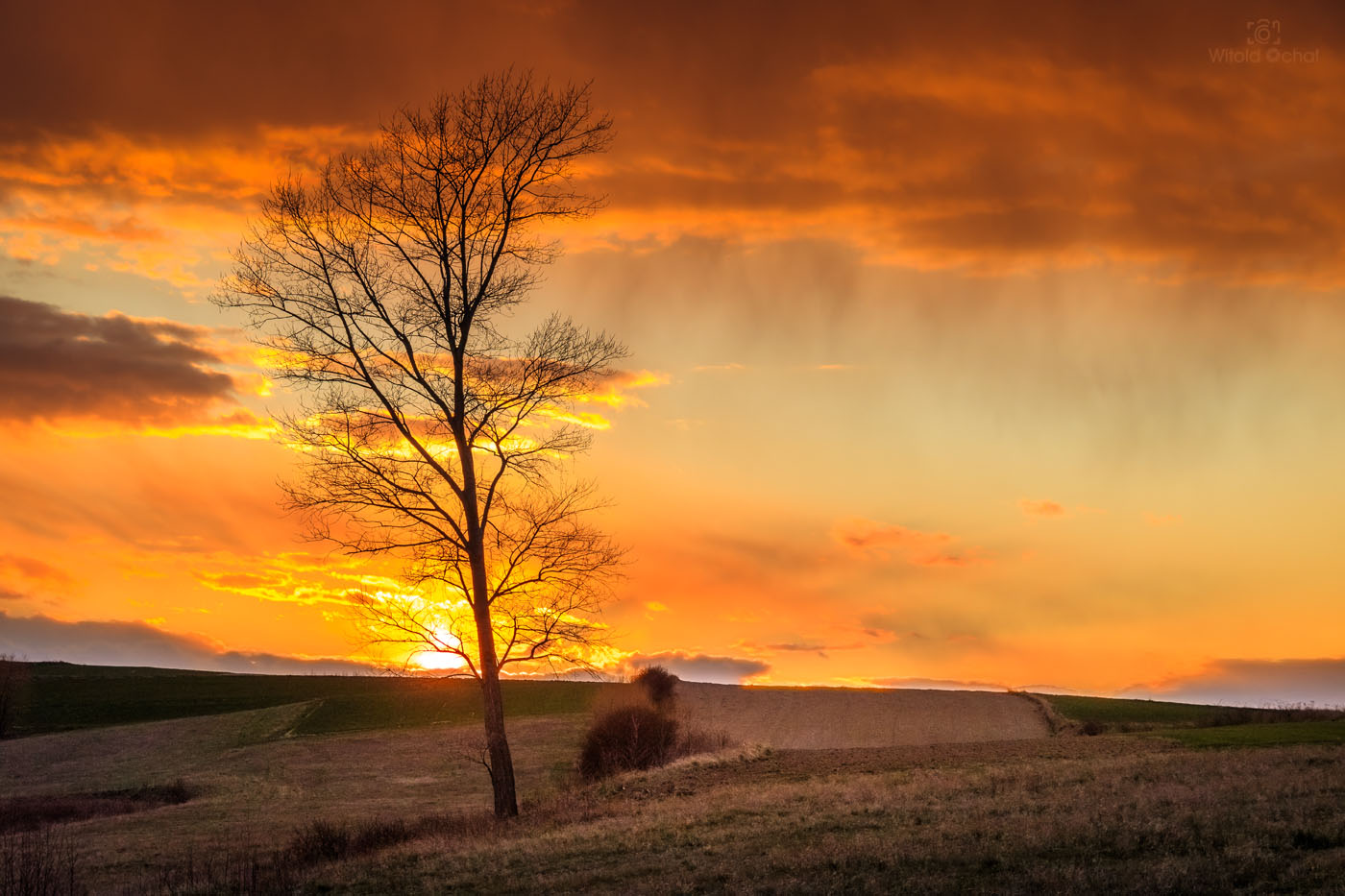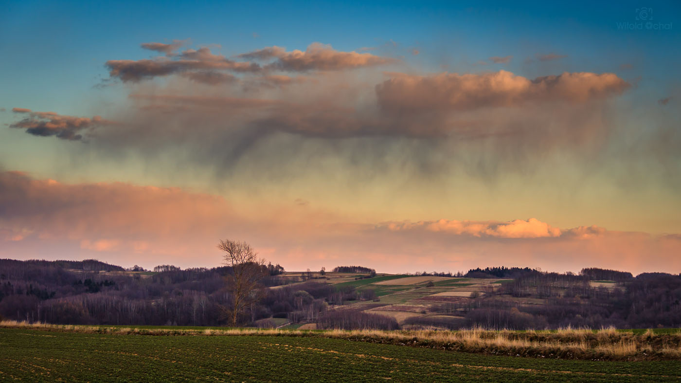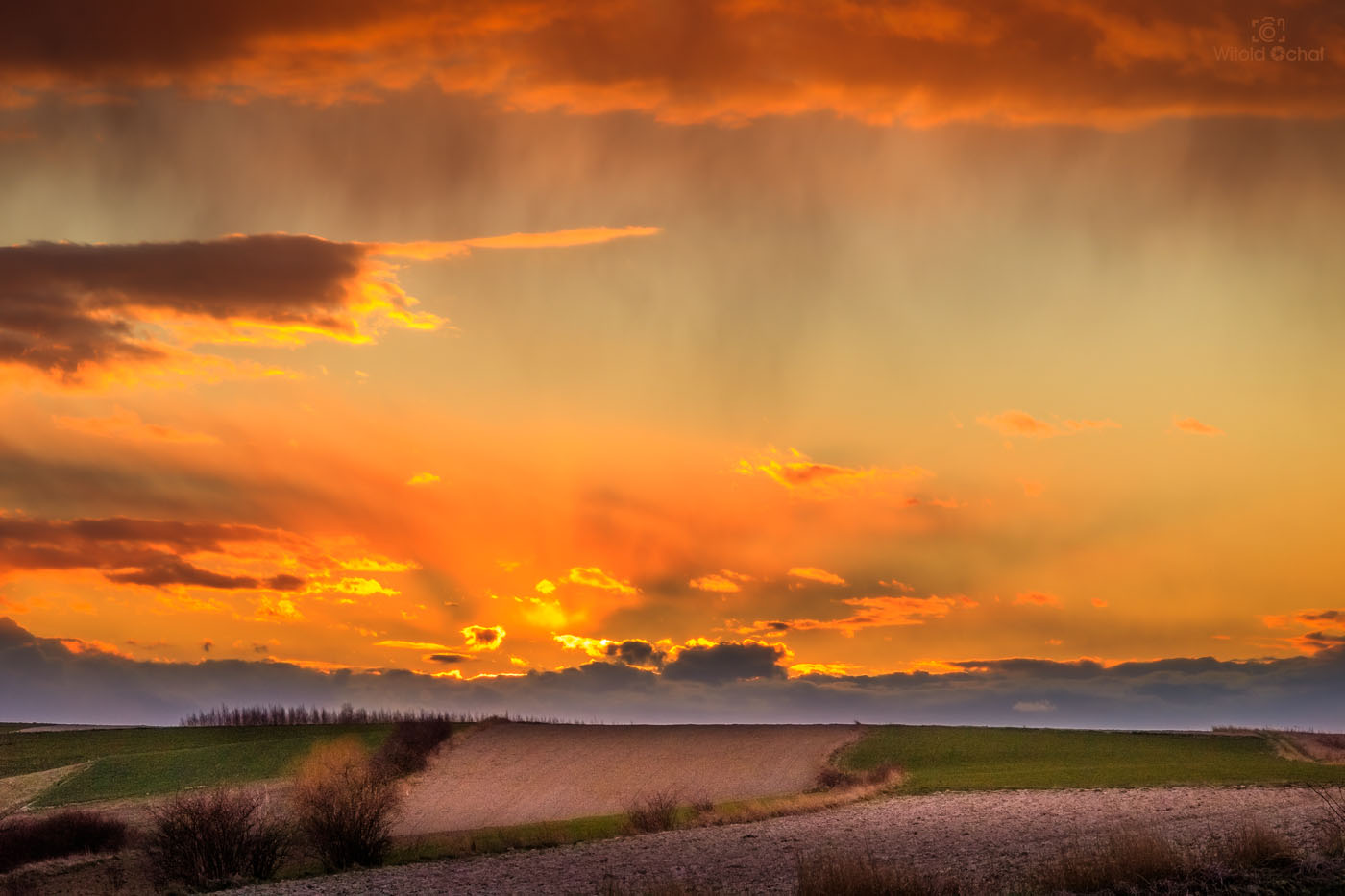 FOT. WITOLD OCHAŁ POWIAT ROPCZYCKO-SĘDZISZOWSKI FOTOGRAFIA KRAJOBRAZOWA PODKARPACIE ZAGORZYCE VIRGA CHMURY NIEBO ZACHÓD SŁOŃCA