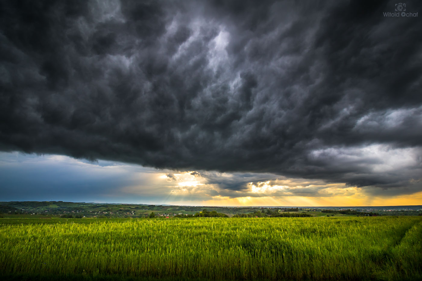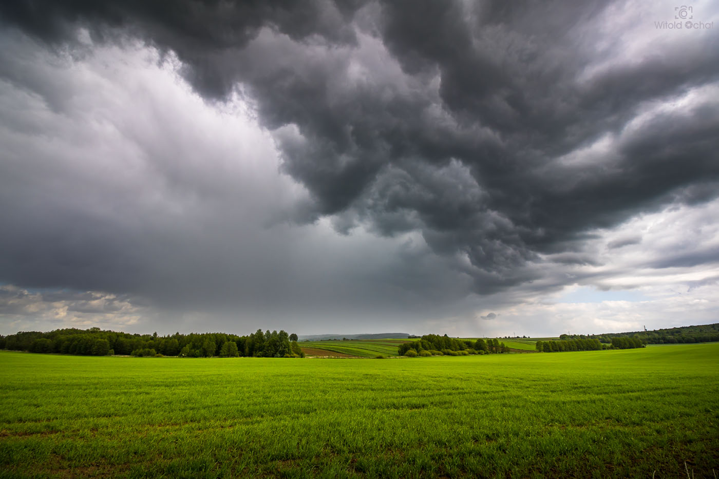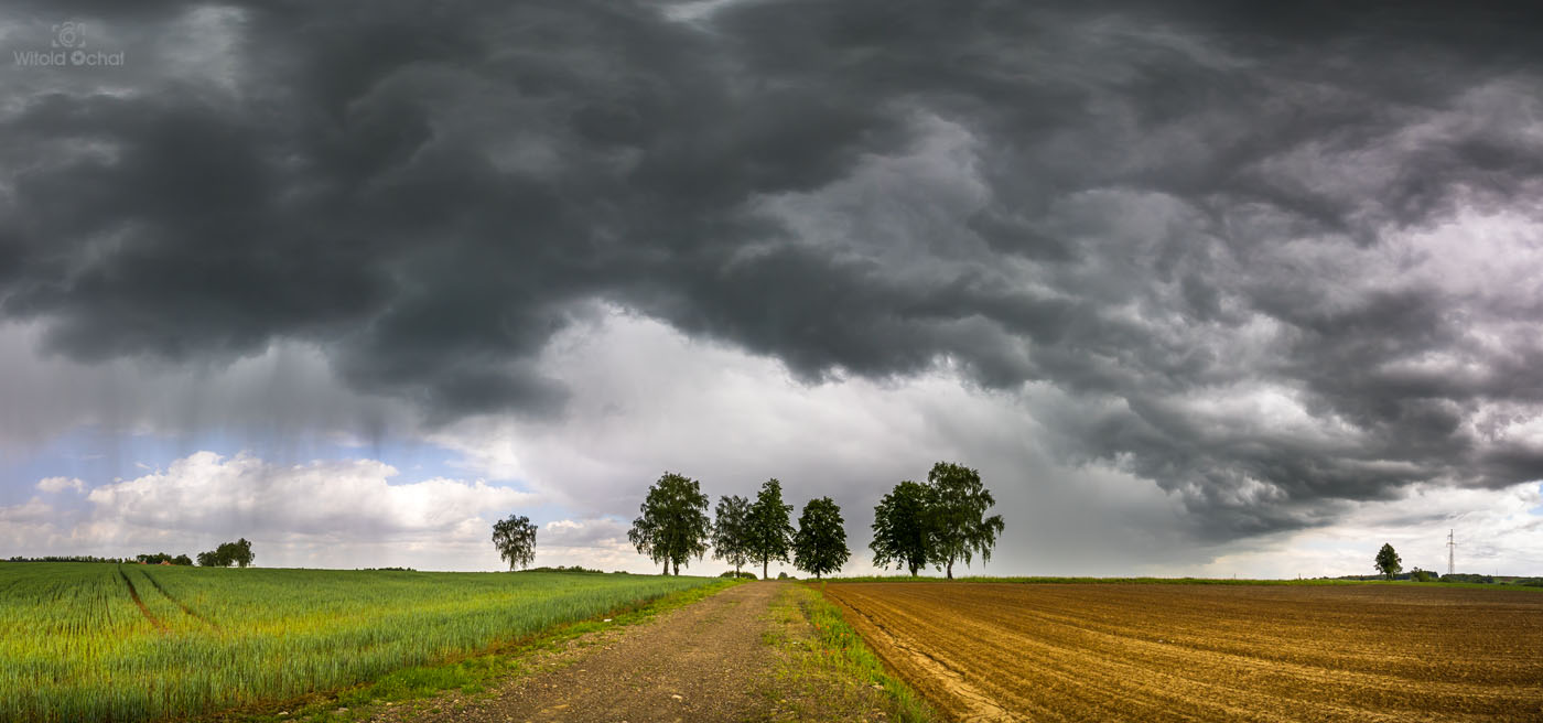Poniższe zdjęcia wykonałem około godziny 18-stej podczas, gdy około 20 km dalej przechodziła burza z intensywnymi opadami deszczu. Smugi opadowe wyglądają jak zwisające z chmury firanki 😉
