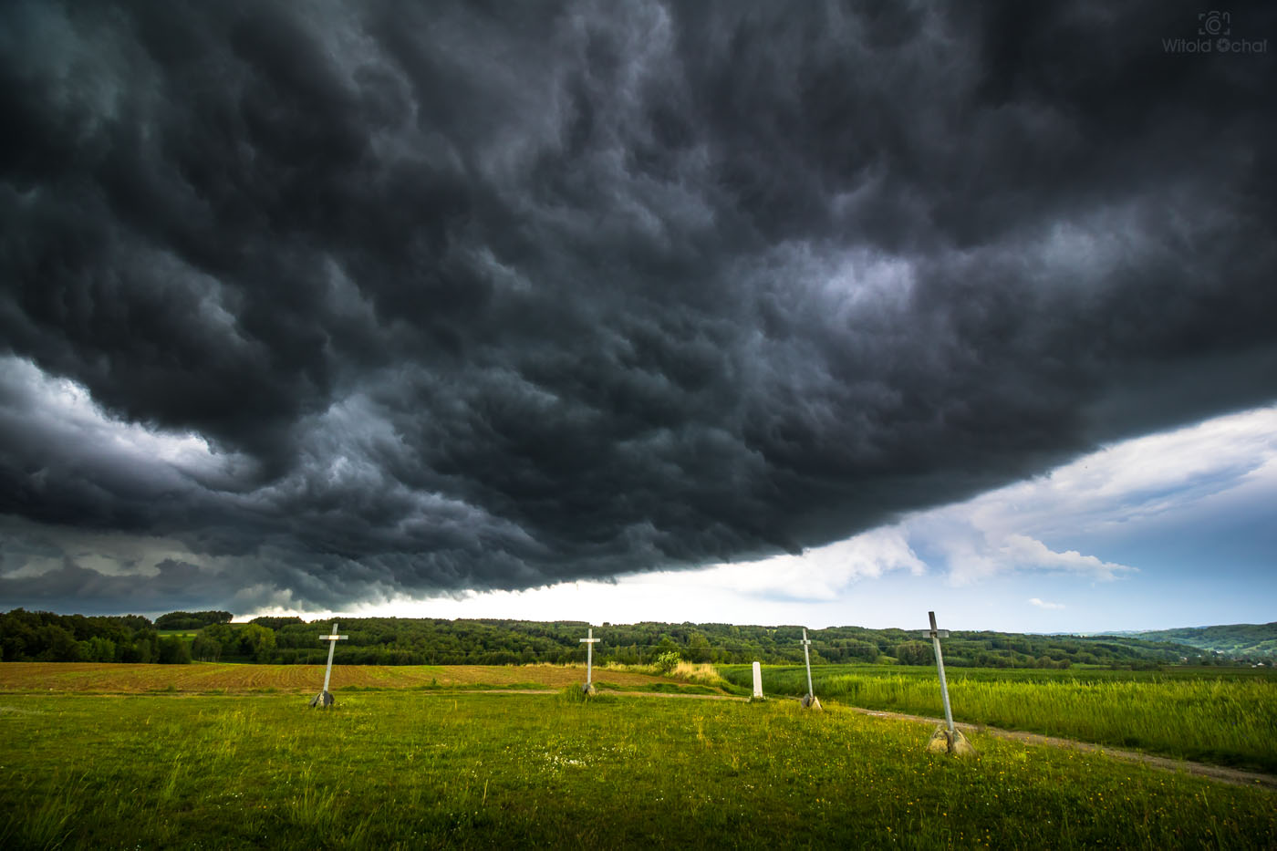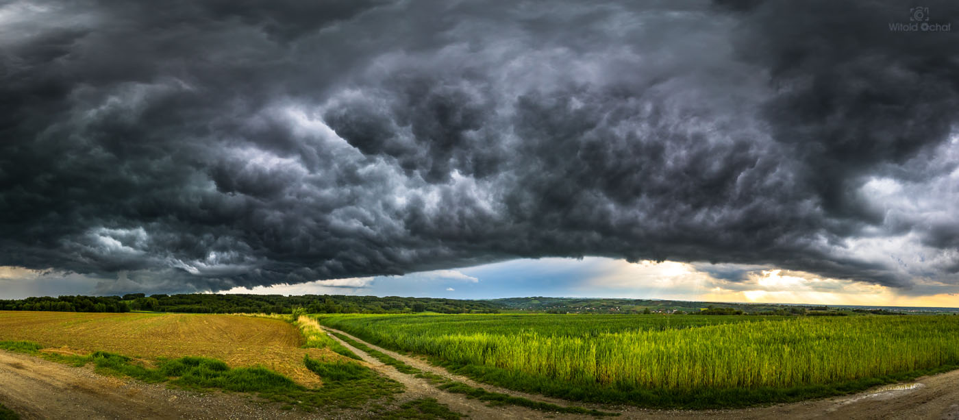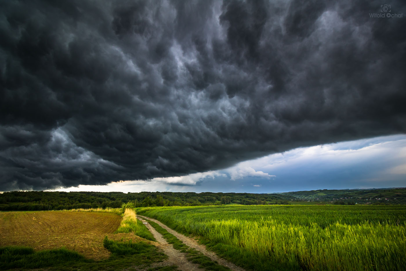Poniższe zdjęcia wykonałem około godziny 18-stej podczas, gdy około 20 km dalej przechodziła burza z intensywnymi opadami deszczu. Smugi opadowe wyglądają jak zwisające z chmury firanki 😉