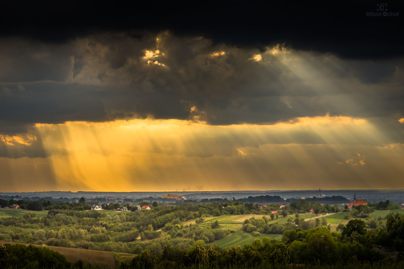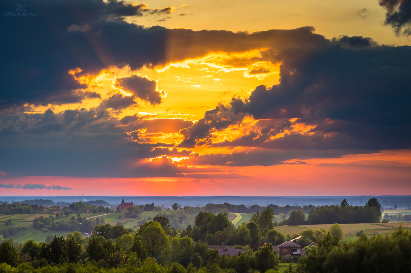 FOT. WITOLD OCHAŁ POWIAT ROPCZYCKO-SĘDZISZOWSKI FOTOGRAFIA KRAJOBRAZOWA PODKARPACIE PODLASEK GÓRA ROPCZYCKA KOŚCIÓŁ ZACHÓD SŁOŃCA NIEBO CHMURY SŁOŃCE PROMIENIE