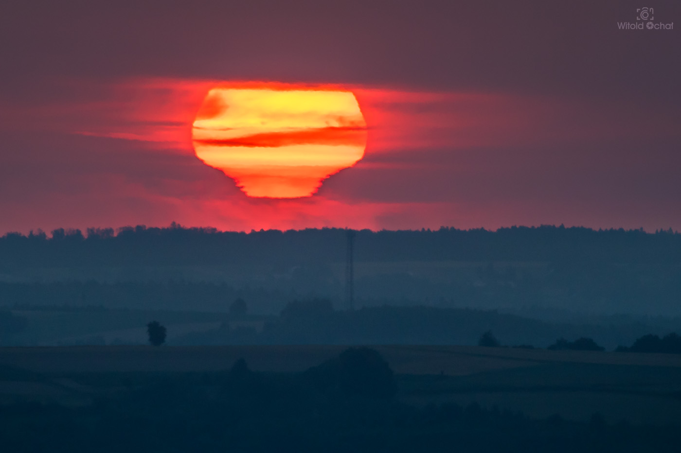 Czasami lubię sobie wycelować długą ogniskową we wschodzące słońce. Tak było ii tym razem. Sami zobaczcie jak bardzo refrakcja atmosferyczna potrafi zniekształcić słońce.