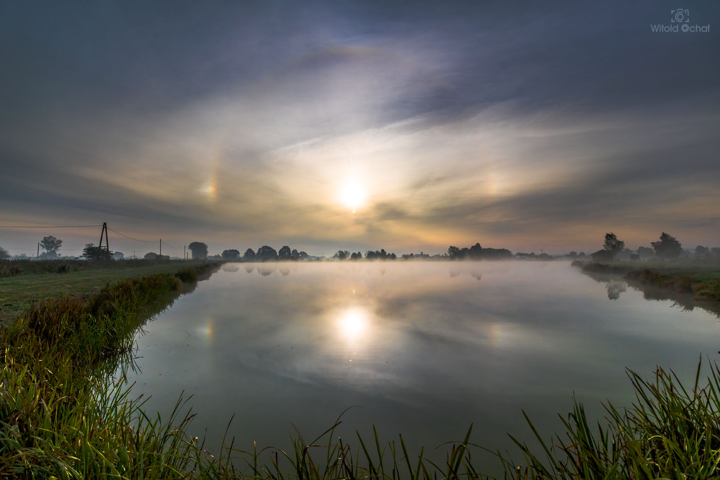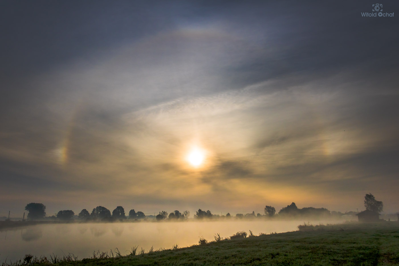 FOT. WITOLD OCHAŁ POWIAT RZESZOWSKI FOTOGRAFIA KRAJOBRAZOWA ZJAWISKO OPTYCZNE HALO SŁONECZNE 22° STAWY TRZCIANA PODKARPACIE