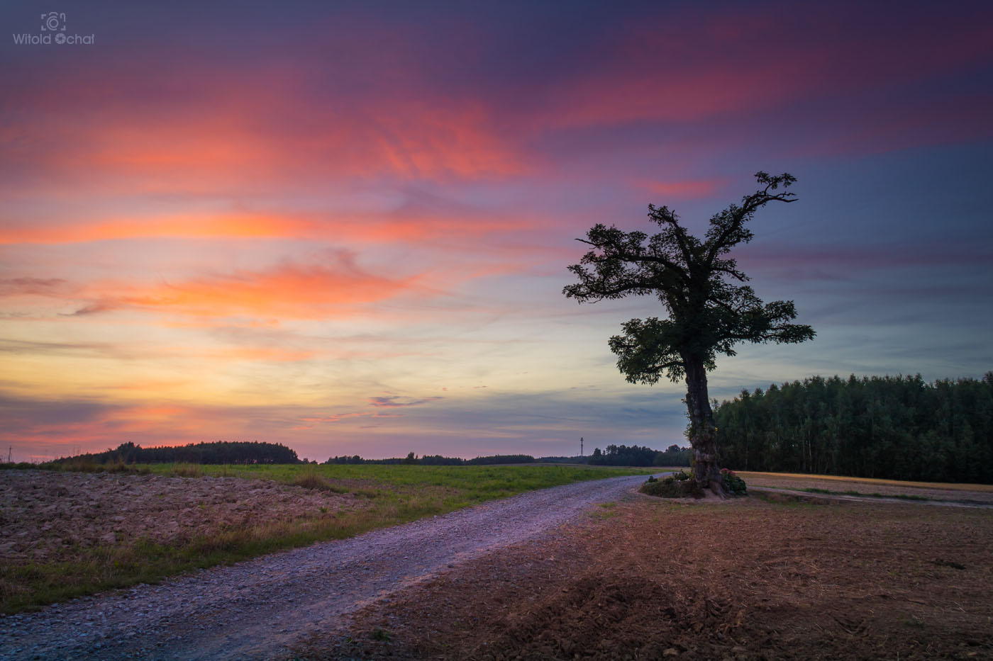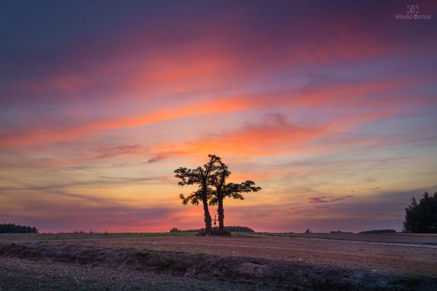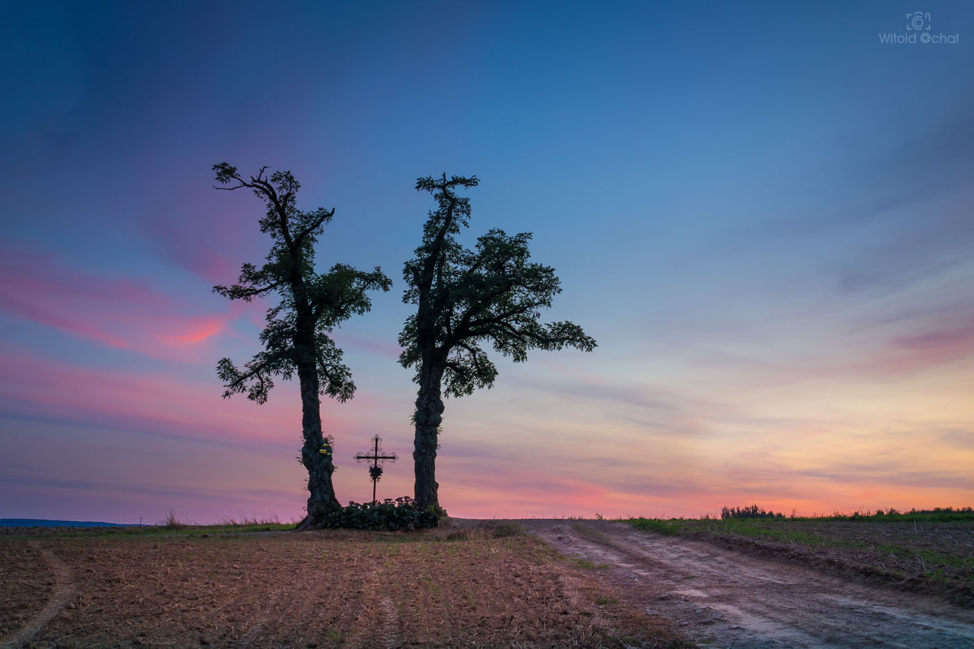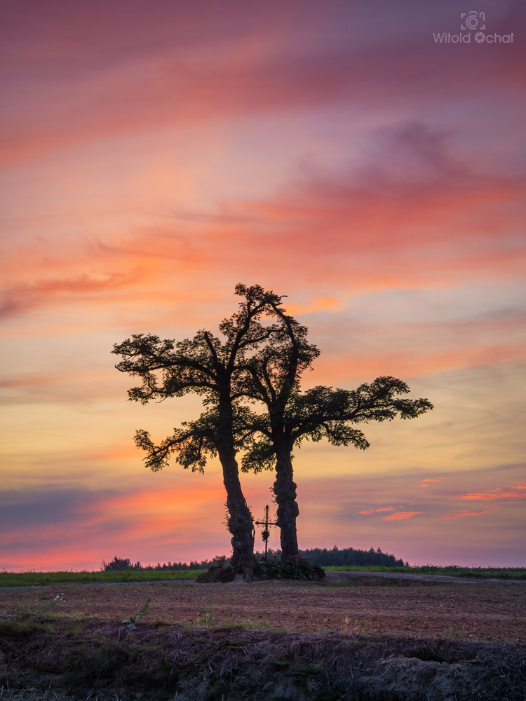 FOT. WITOLD OCHAŁ POWIAT ROPCZYCKO-SĘDZISZOWSKI FOTOGRAFIA KRAJOBRAZOWA PODKARPACIE NOCKOWA AKACJE WIECZÓR ZMROK DRZEWA KAPLICZKA KRZYŻ
