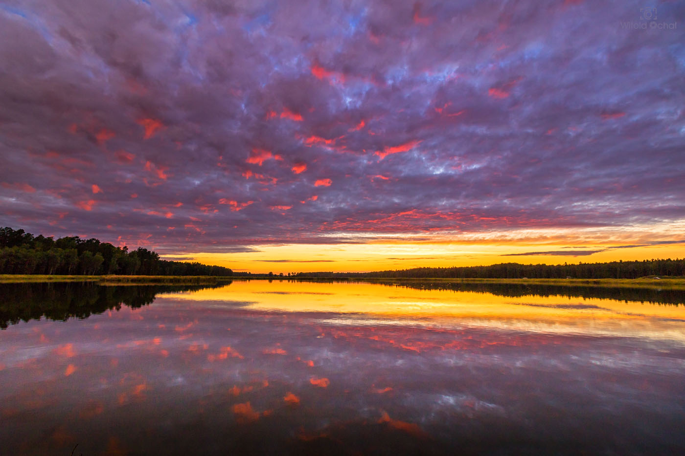 Nastawiam budzik na godzinę przed wschodem. Dzwoni – bije się z myślami – wstawać, czy lepiej zostać w ciepłym łóżku. Prognozy zapowiadały poranne mgły, moja świadomość zapowiadała długie wylegiwanie się w łóżku. Czas mija, dzwoni „drzemka”, ja dalej biję się z myślami. Czas ucieka. W końcu podejmuję decyzję, wstaję i jadę w najbliższe okolice, na dalsze wyprawy nie ma już czasu. Kilka szybkich zdjęć i wracam do jeszcze nie schłodzonego łóżka 😀
