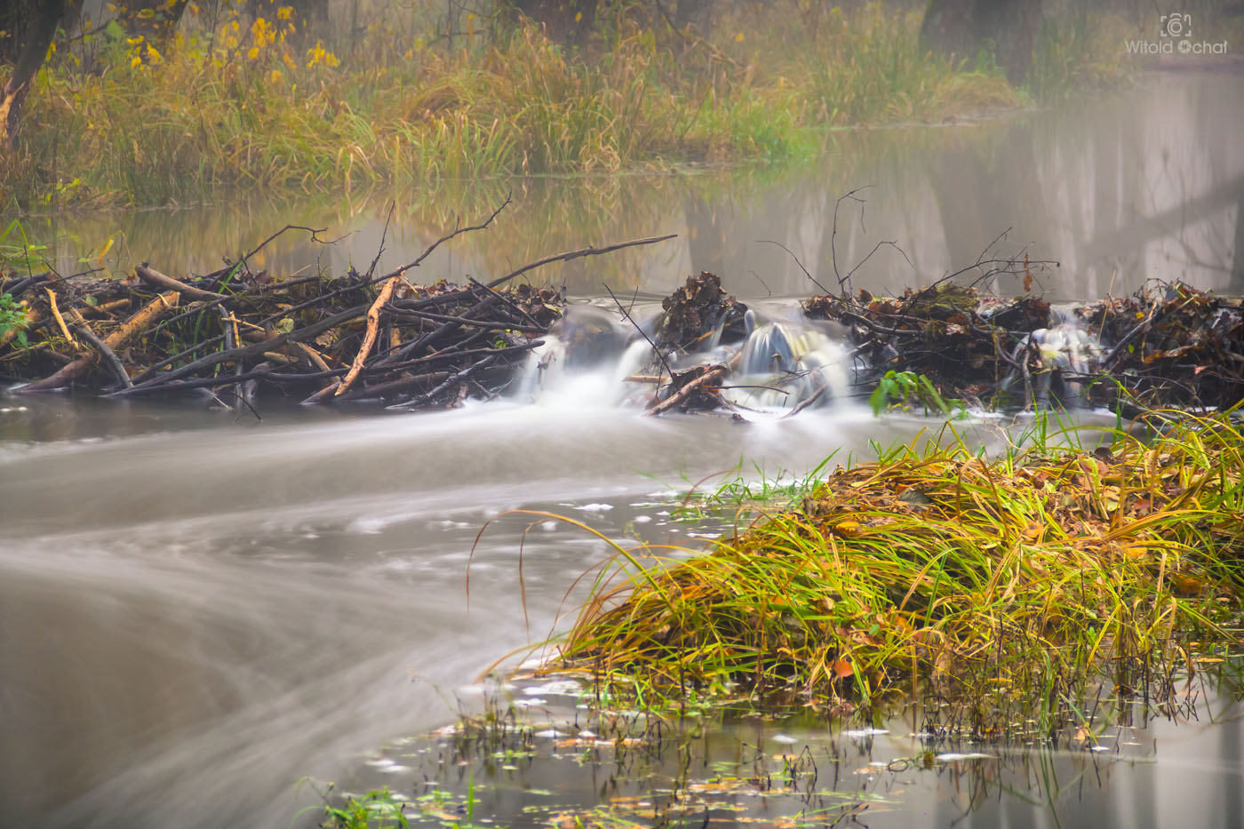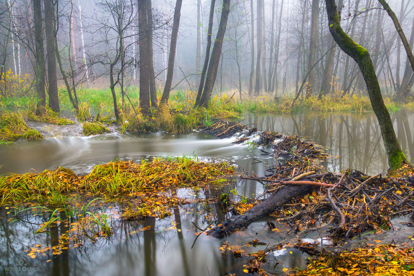 W jeden z listopadowych mglistych poranków trafiłem na bobrowisko na rzece Tuszymka. Bobry robią naprawdę dobrą robotę, jeśli chodzi o nawodnienie okolicy. Oczywiście, jeśli swoje budowle robią w miejscach, gdzie woda nie podtapia ziem uprawnych. Tutaj znalazły sobie miejsce w lesie, choć blisko ruchliwej drogi. Niestety, byłem tam wiele razy, nigdy nie udało mi się żadnego z nich spotkać.