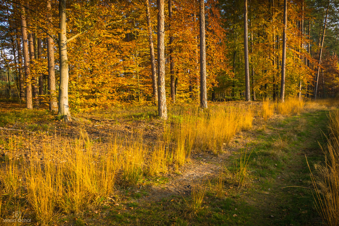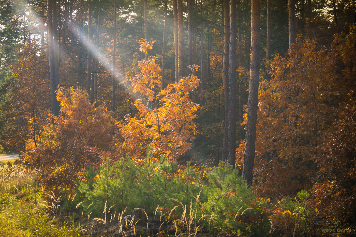 FOT. WITOLD OCHAŁ POWIAT KOLBUSZOWSKII FOTOGRAFIA KRAJOBRAZOWA NIWISKA LAS JESIENNE KOLORY W LESIE
