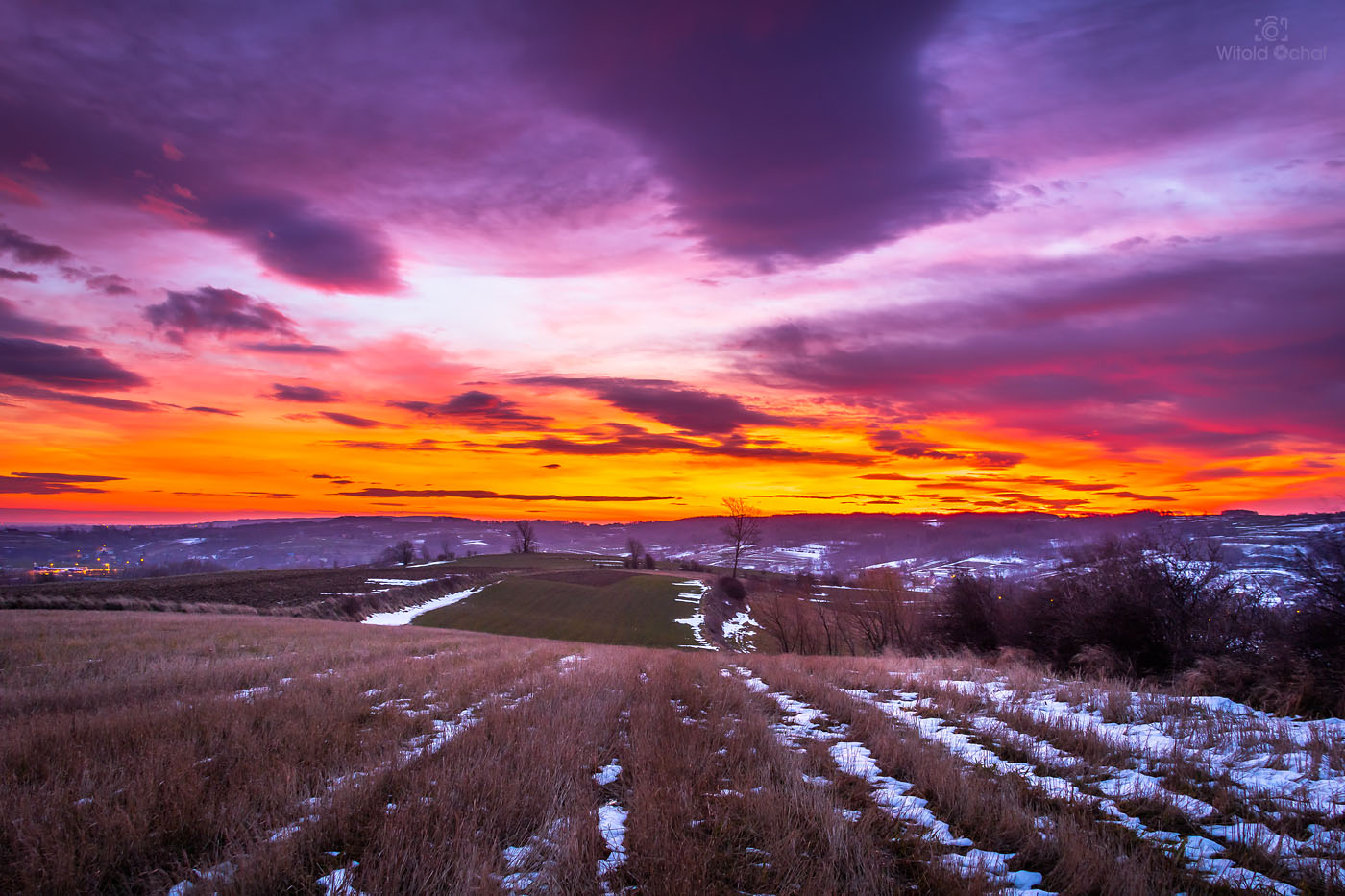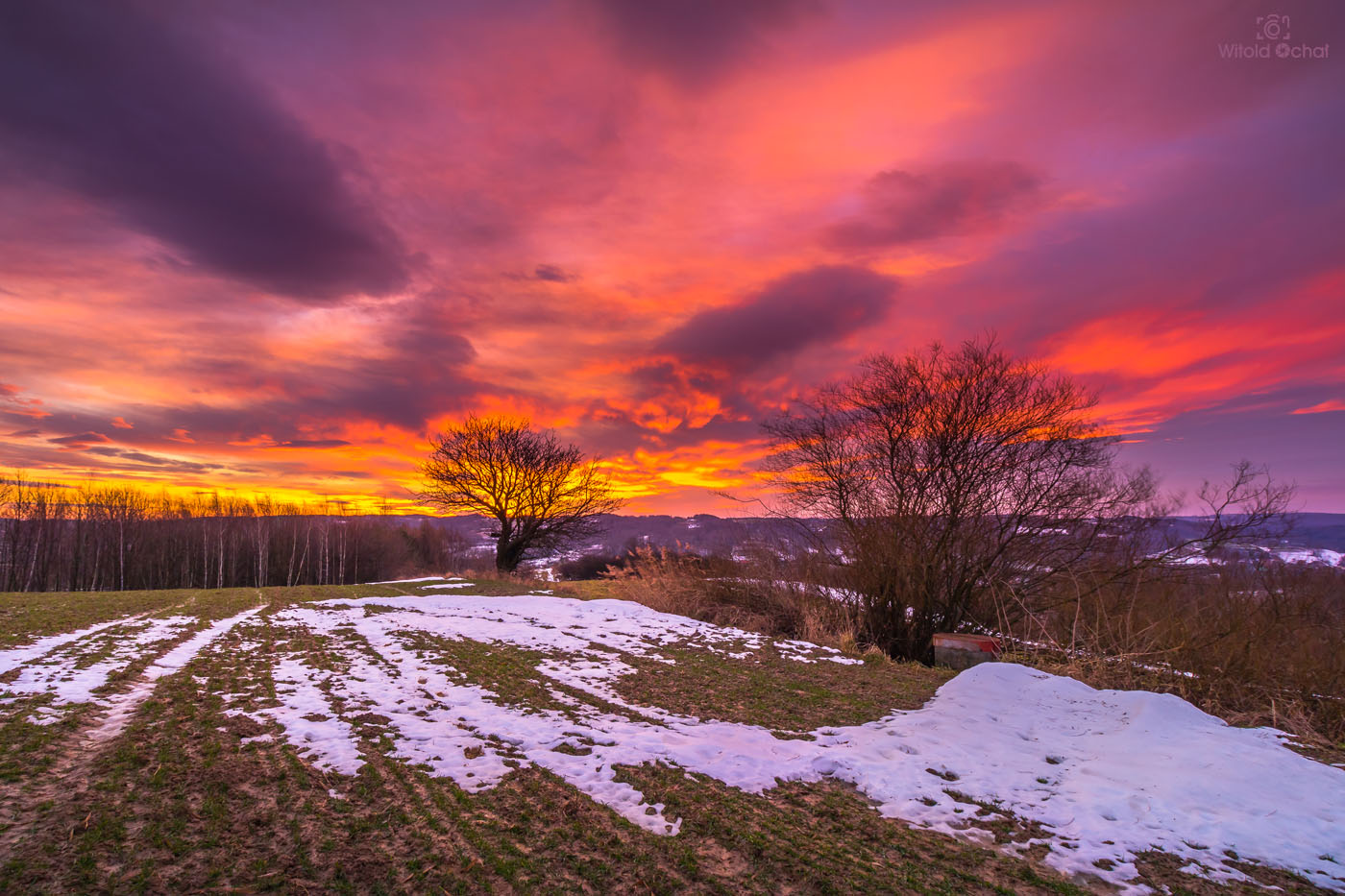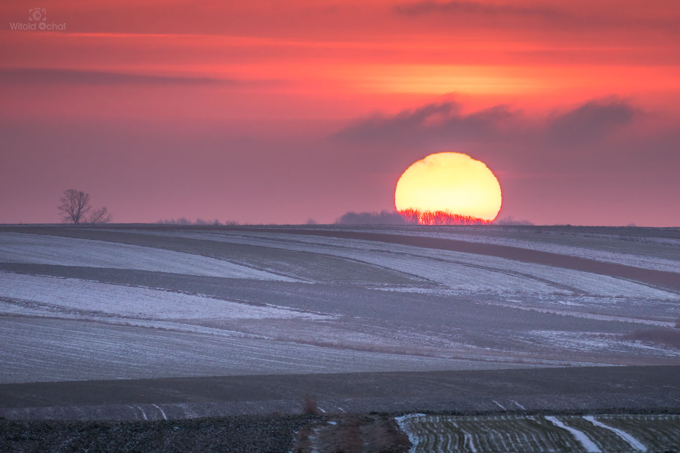 FOT. WITOLD OCHAŁ POWIAT ROPCZYCKO-SĘDZISZOWSKI FOTOGRAFIA KRAJOBRAZOWA NOCKOWA PODKARPACIE AKACJE WSCHÓD SŁOŃCA ZIMA SNIEG MRÓZ