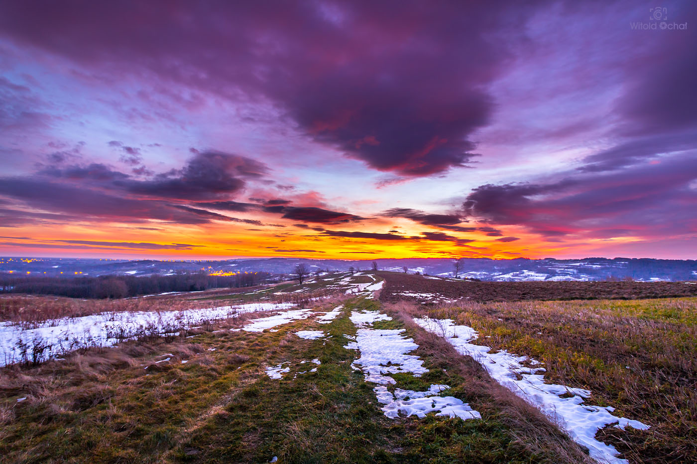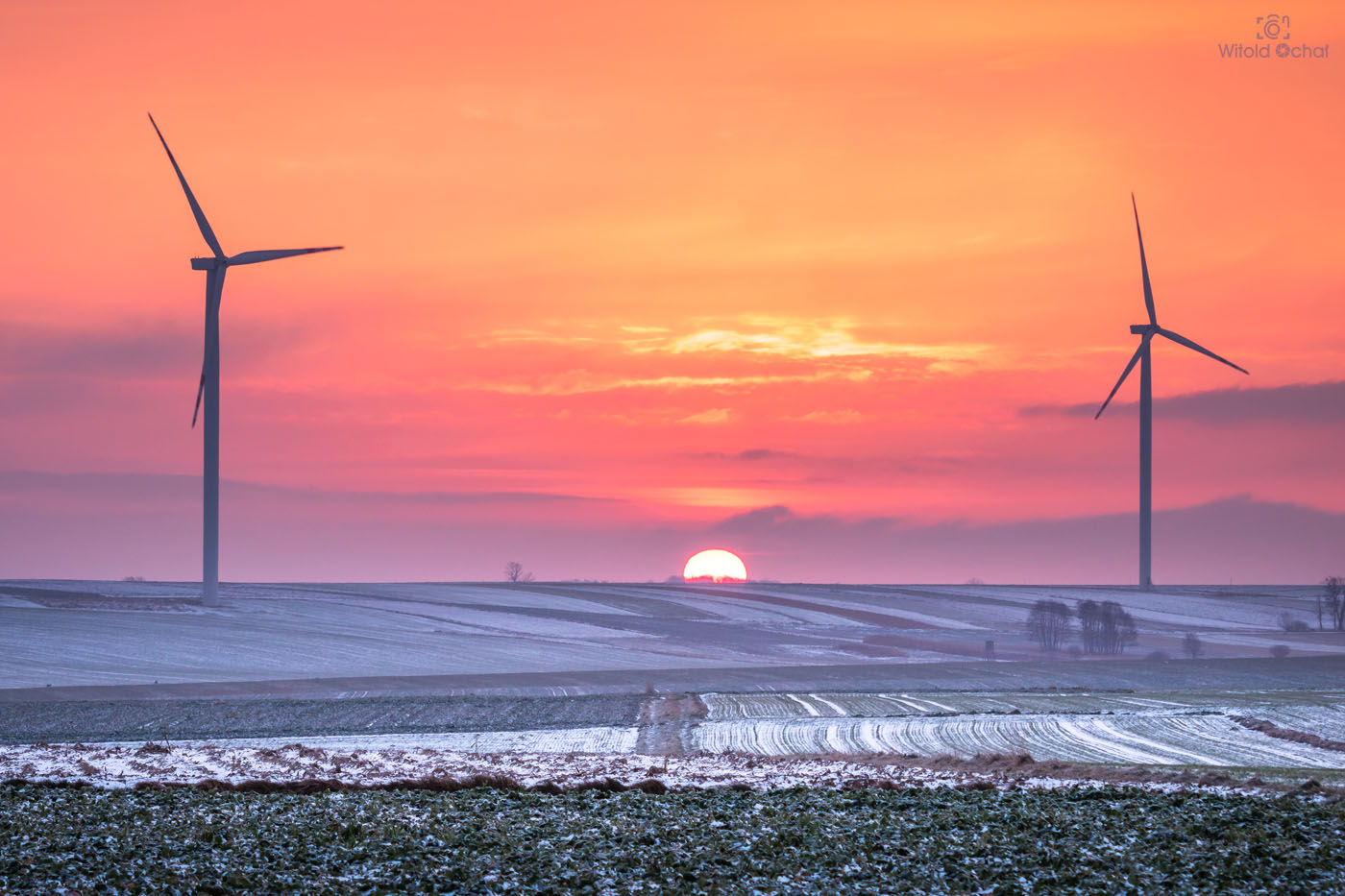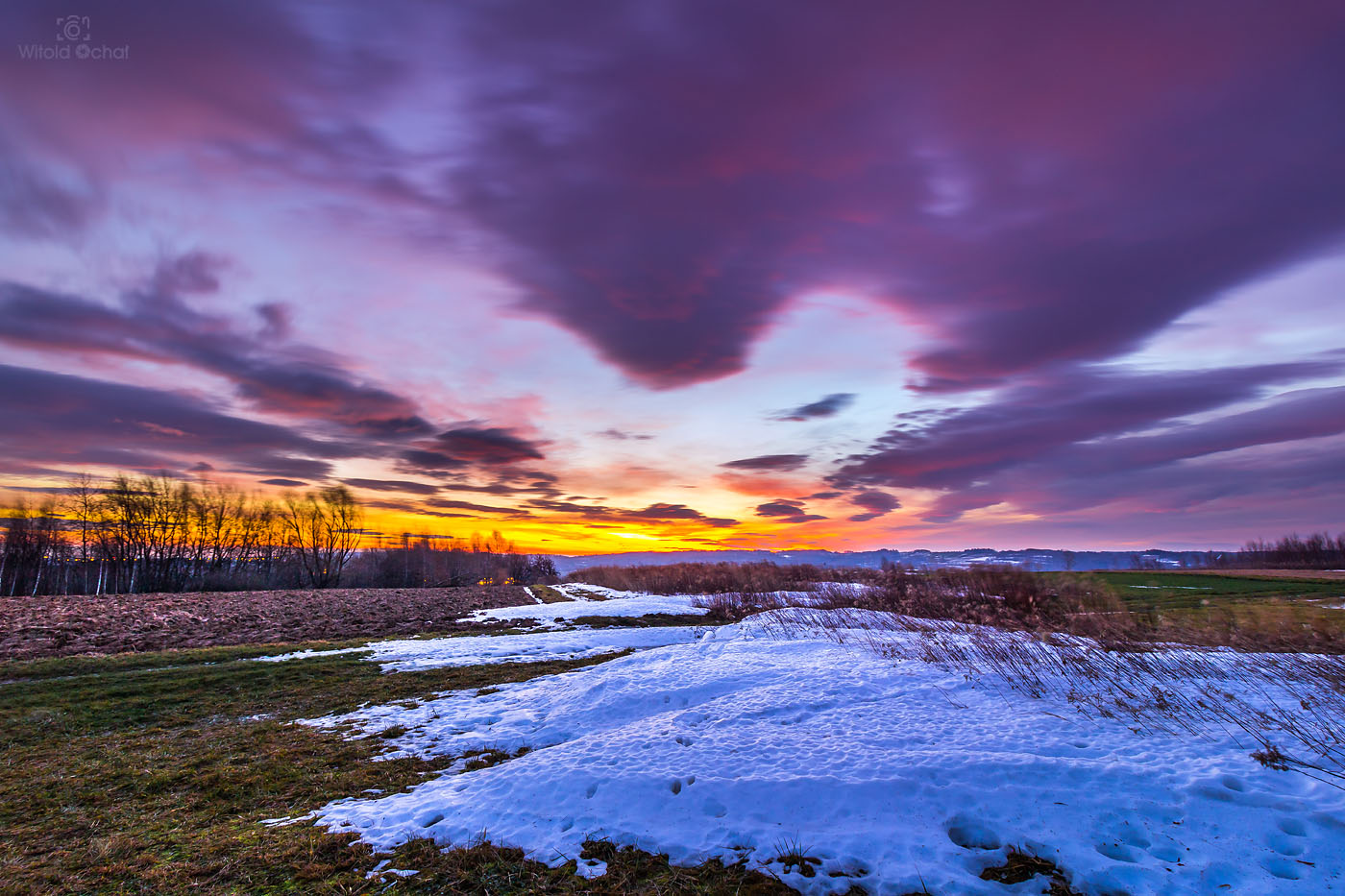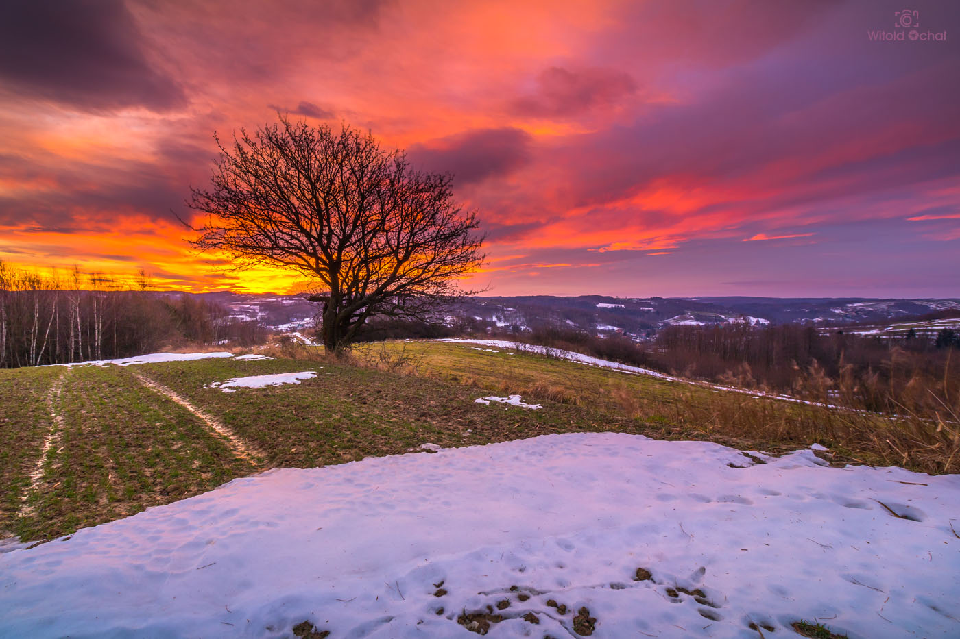 FOT. WITOLD OCHAŁ POWIAT ROPCZYCKO-SĘDZISZOWSKI FOTOGRAFIA KRAJOBRAZOWA NOCKOWA PODKARPACIE AKACJE WSCHÓD SŁOŃCA ZIMA SNIEG MRÓZ