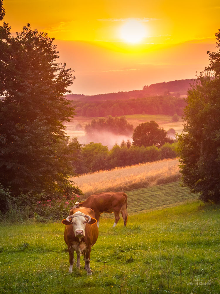 Malownicza chmura cumulus, niczym kalafior z pięknym pileusem (forma spłaszczonej chmury występującej nad chmurami cumulus, zdj. nr 2) wisiała sobie na wschodnim niebie, a okolicę malowało zachodzące słońce. Kolejne zdjęcie z Krasulą. Kiedy zobaczyłem ją pasącą się tuż przy drodze nie mogłem się powstrzymać przed zrobieniem jej fotki, tym bardziej że tak wyczekująco patrzyła na mnie pozując niczym zawodowa modelka 🙂