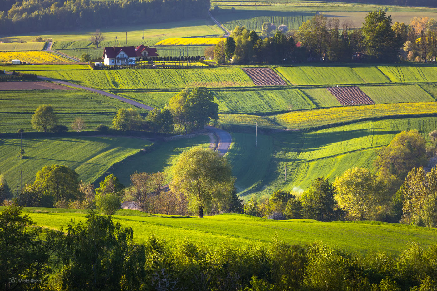 Ostatnie kwitnące drzewka owcowe i pofalowane szachownice zielono-żółtych pól. To taka kwitesencja maja w mojej okolicy.